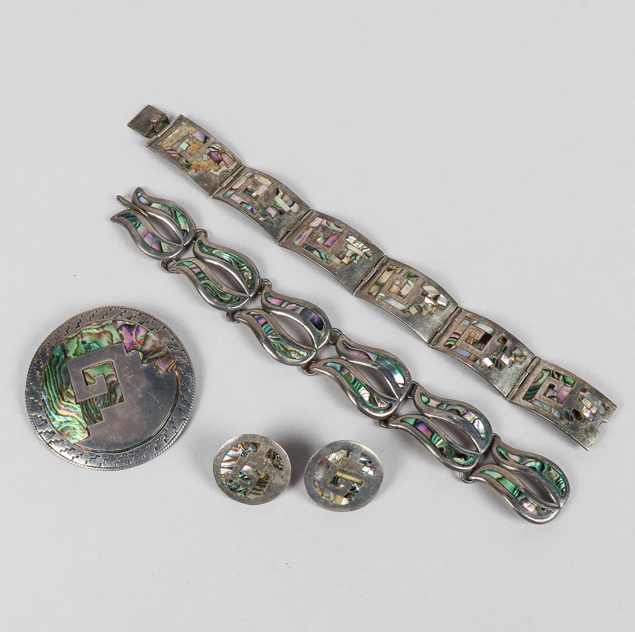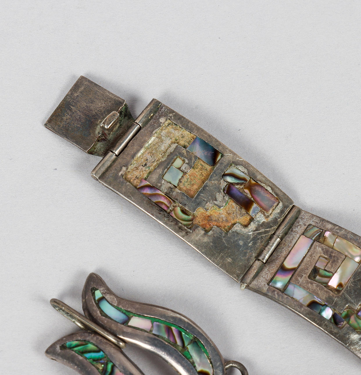 4998362. A SILVER JEWELLERY with abalone shell inlay, Mexico.