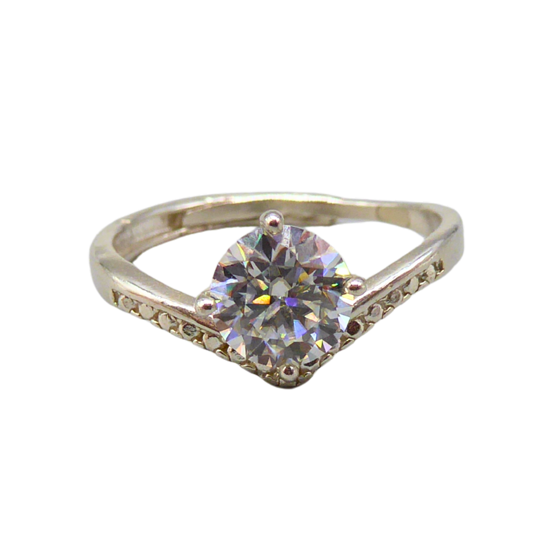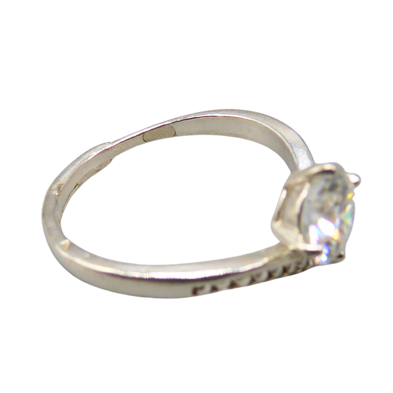 925 silver ring set with a brilliant-cut moissanite.