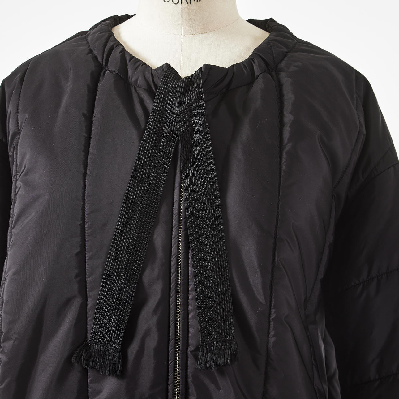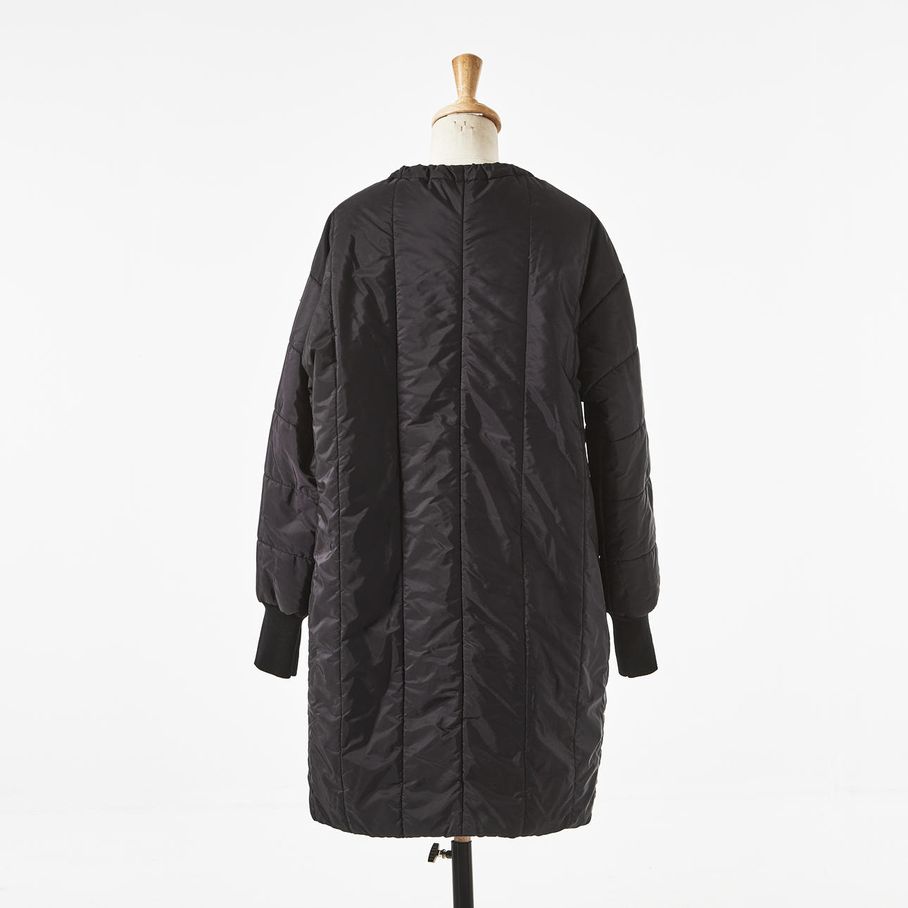 Black nylon, cuffs at cuffs, drawstring at the neck, back length approx. 96, bust measured flat approx. 63 cm.