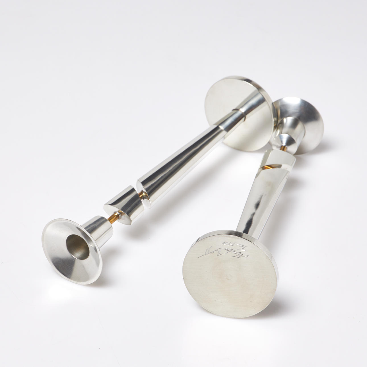 MICKE BERGGREN. candlesticks, a pair, Böketofte Tenn, signed.