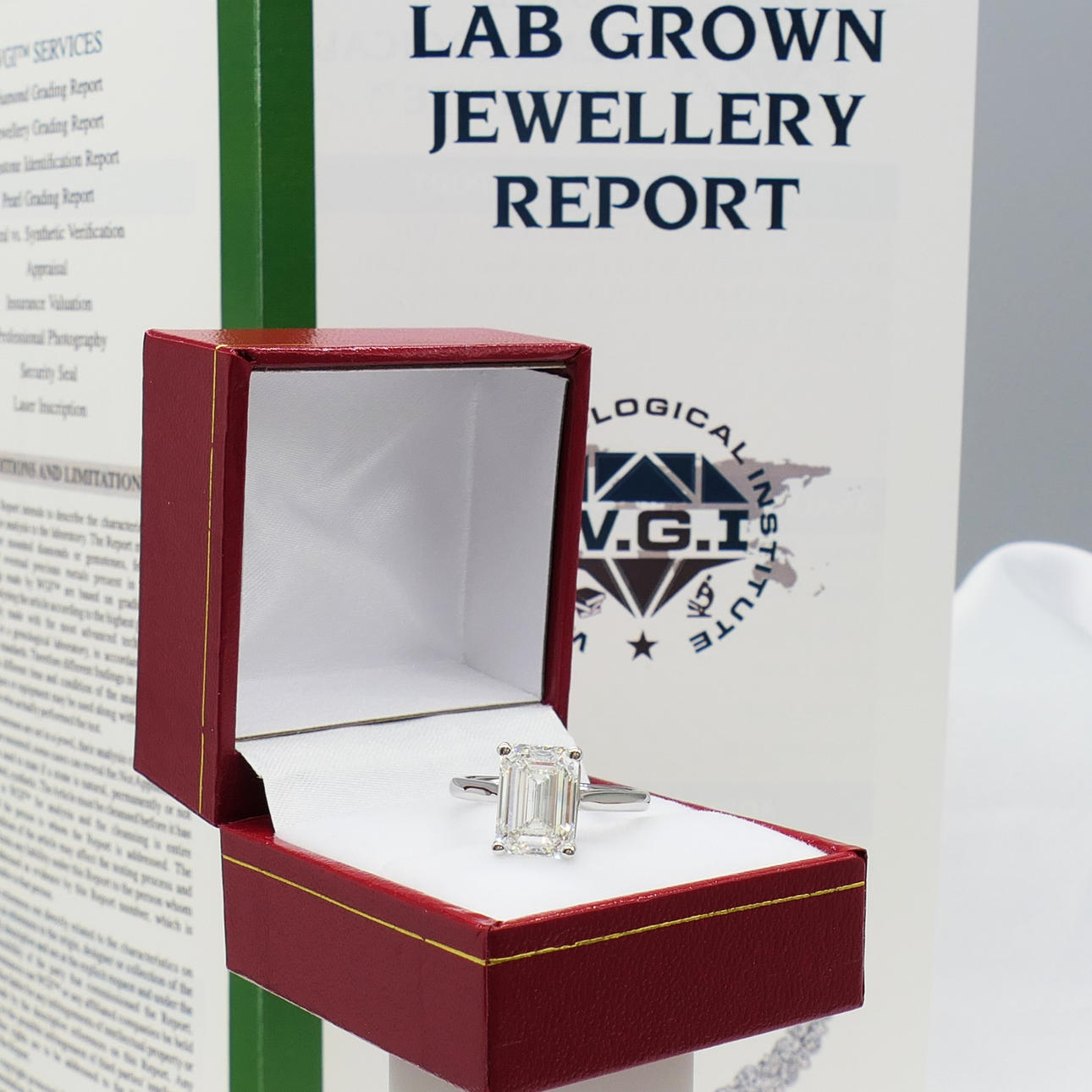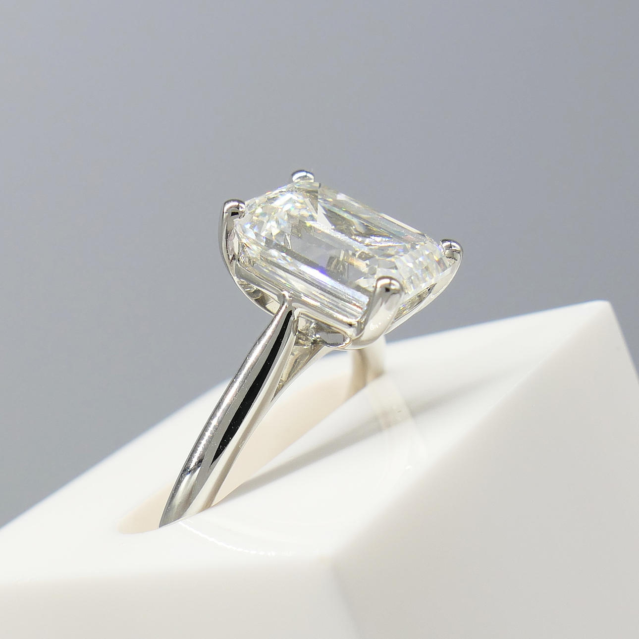 • Diamond: lab grown; emerald cut; 4.03 carats; G colour; VS2 clarity; measures 10.45 x 7.46 x 5.16 mm