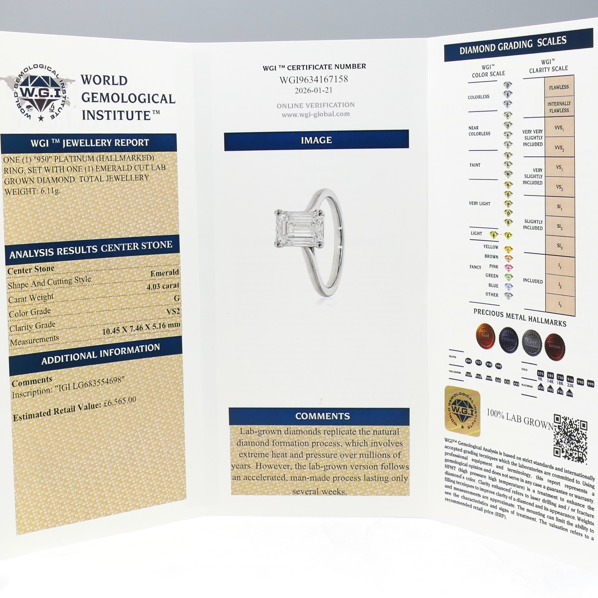 4998740. SOLITAIRE 4.03CT DIAMOND ring.