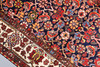 Hamadan gallery model with dark blue base color and a center field covered in repeated floral and palmette motifs in polychrome color scale. The border has light bottom with floral decor. The forelock is made of wool and the warp is of cotton.
