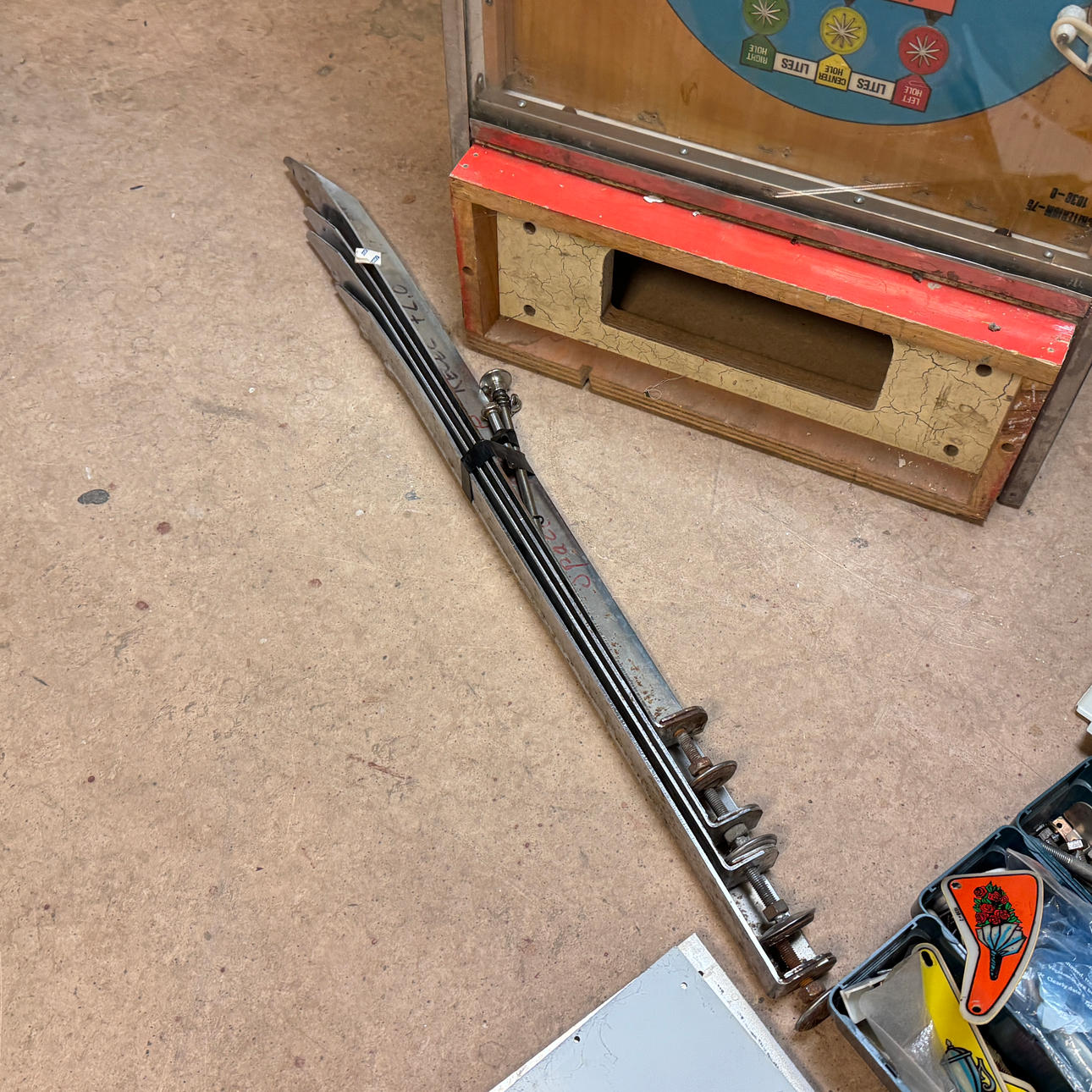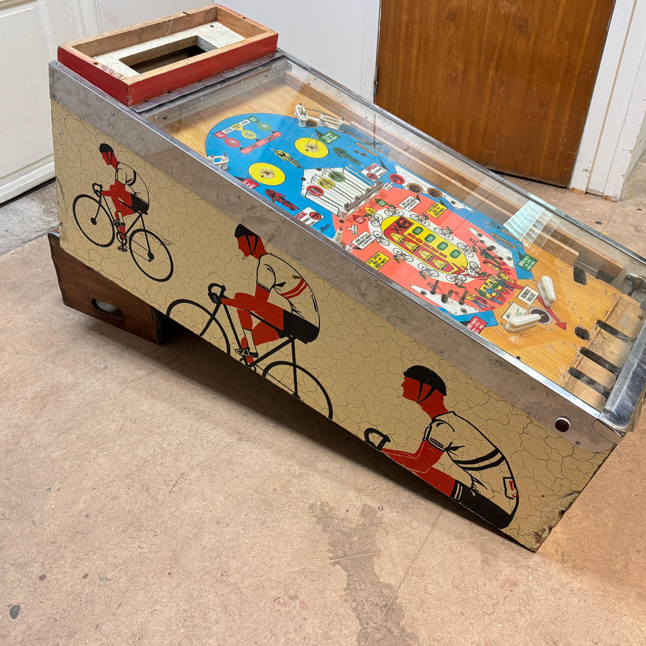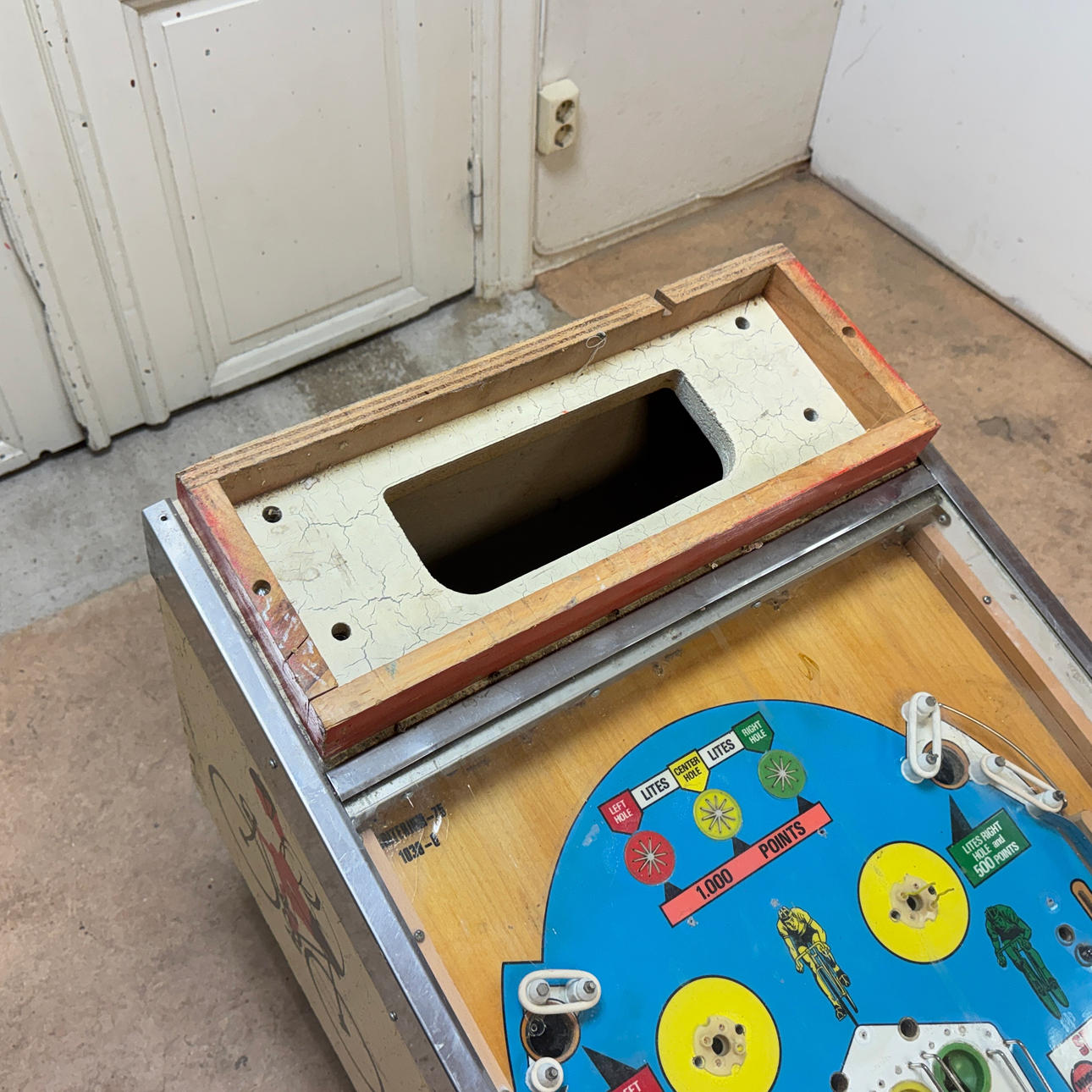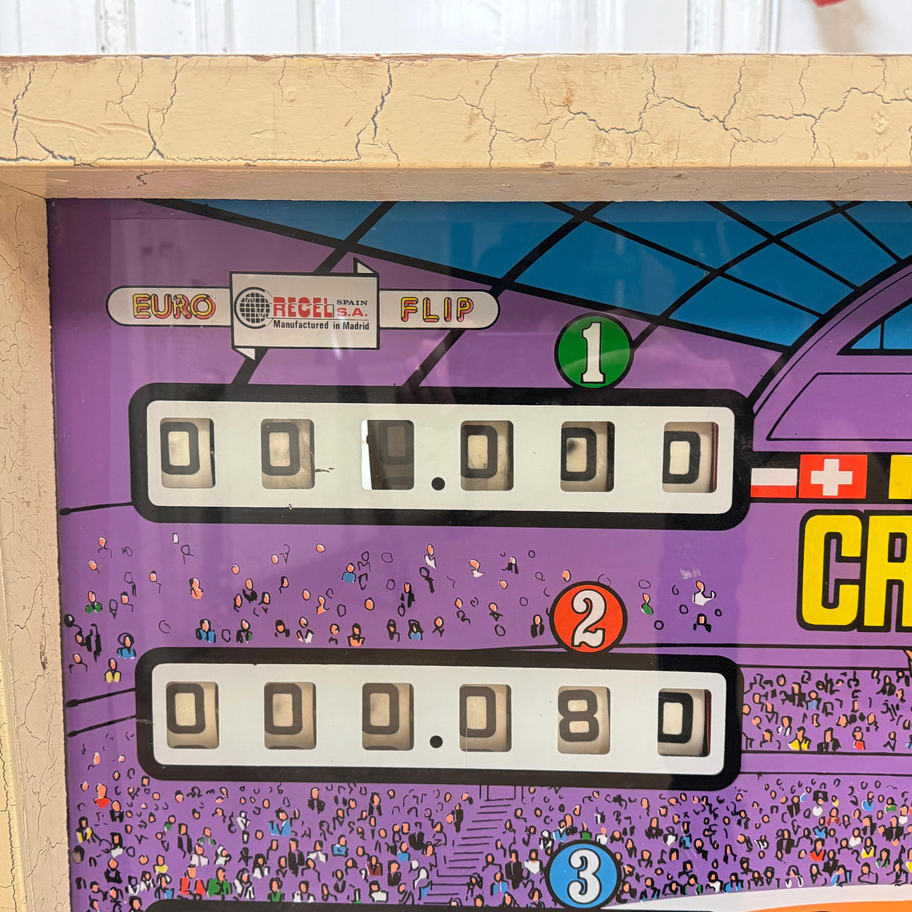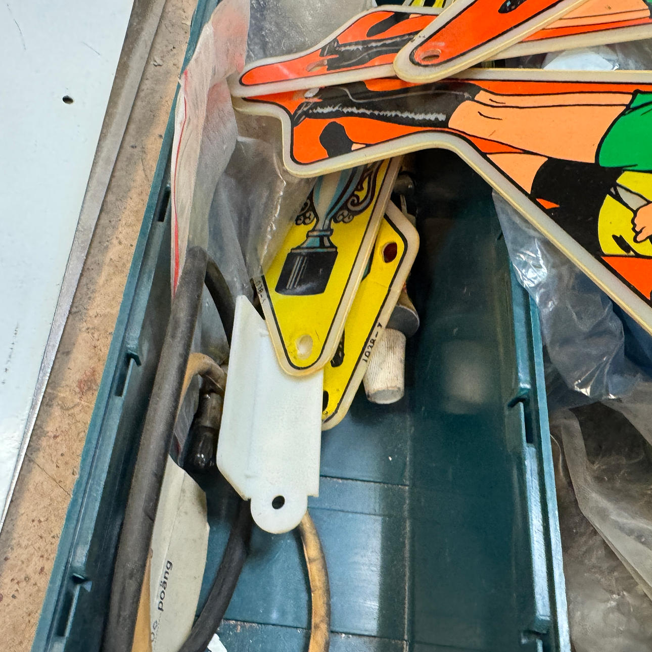Rear glass in good condition. Cabinet in good condition for its age. Playing field and plastic ok (a broken plastic though). The game is otherwise in good shape for its age.