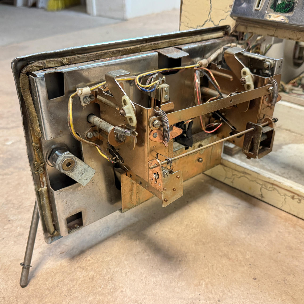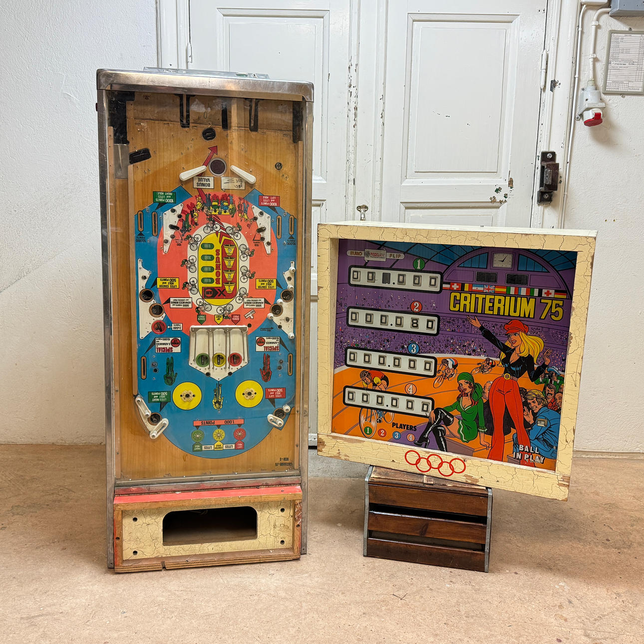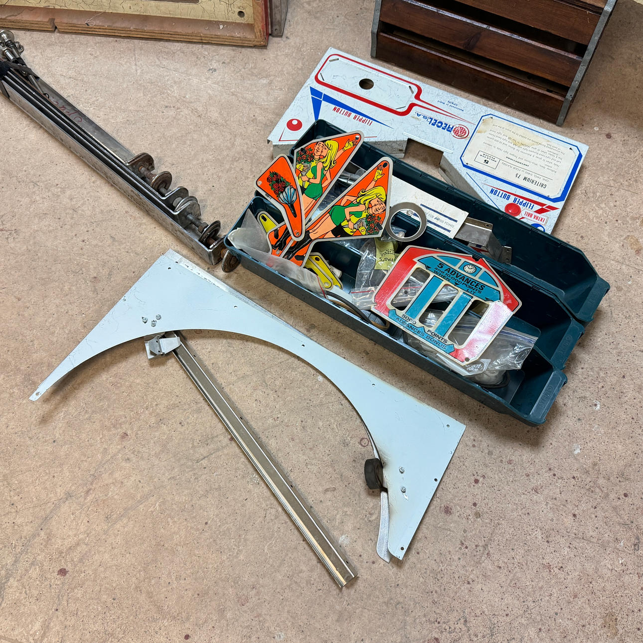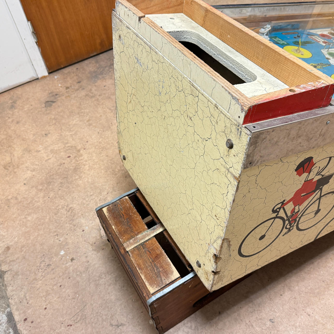 Rear glass in good condition. Cabinet in good condition for its age. Playing field and plastic ok (a broken plastic though). The game is otherwise in good shape for its age.