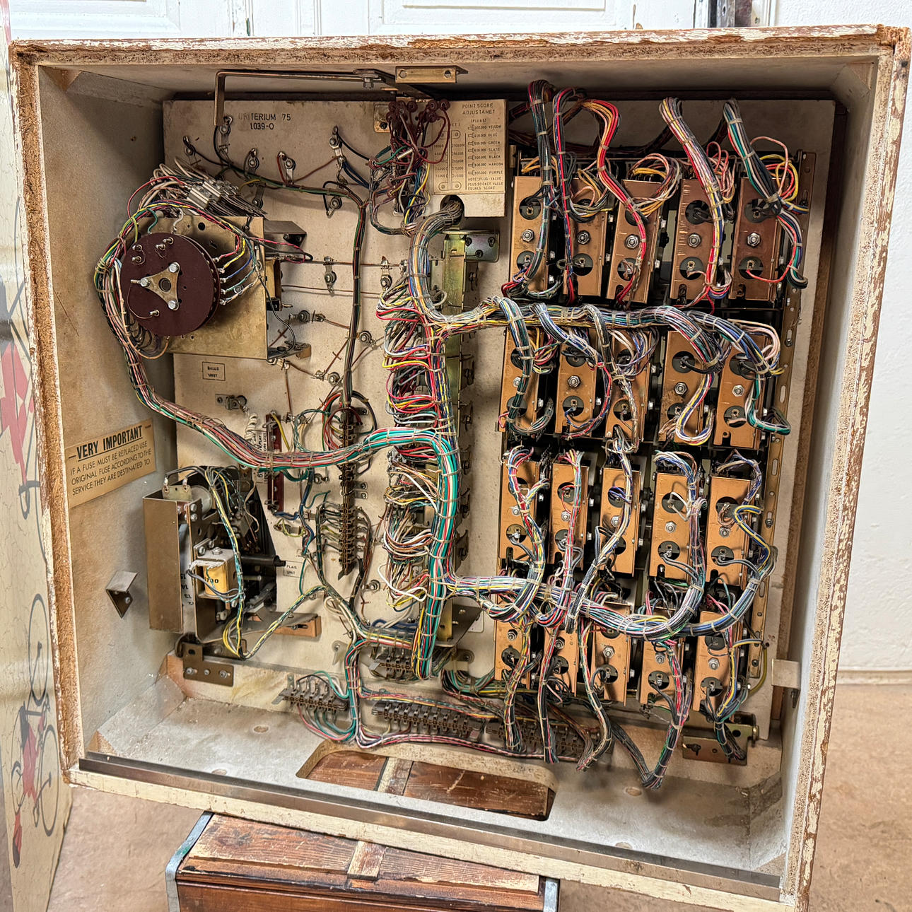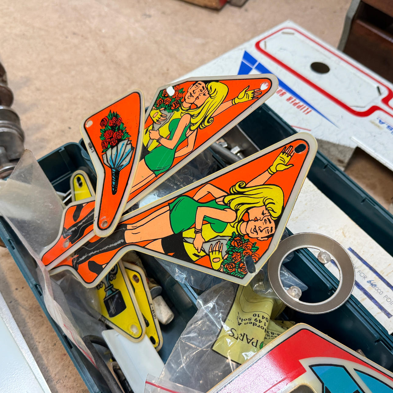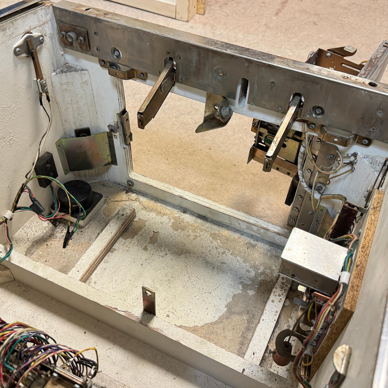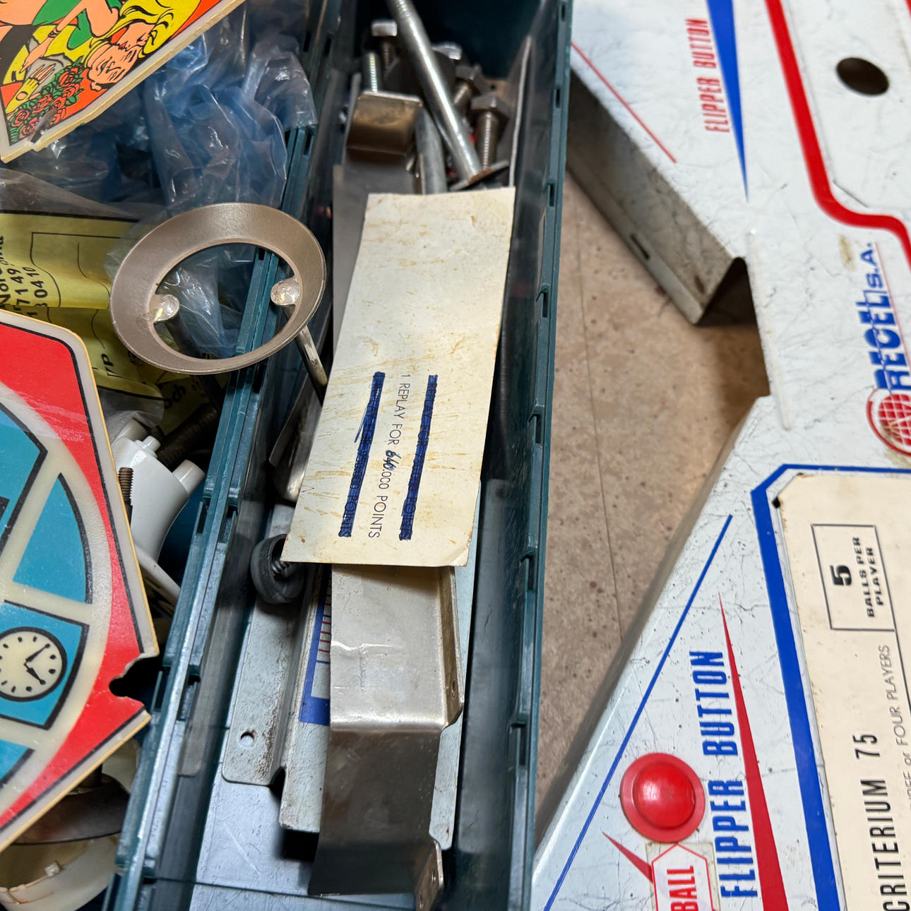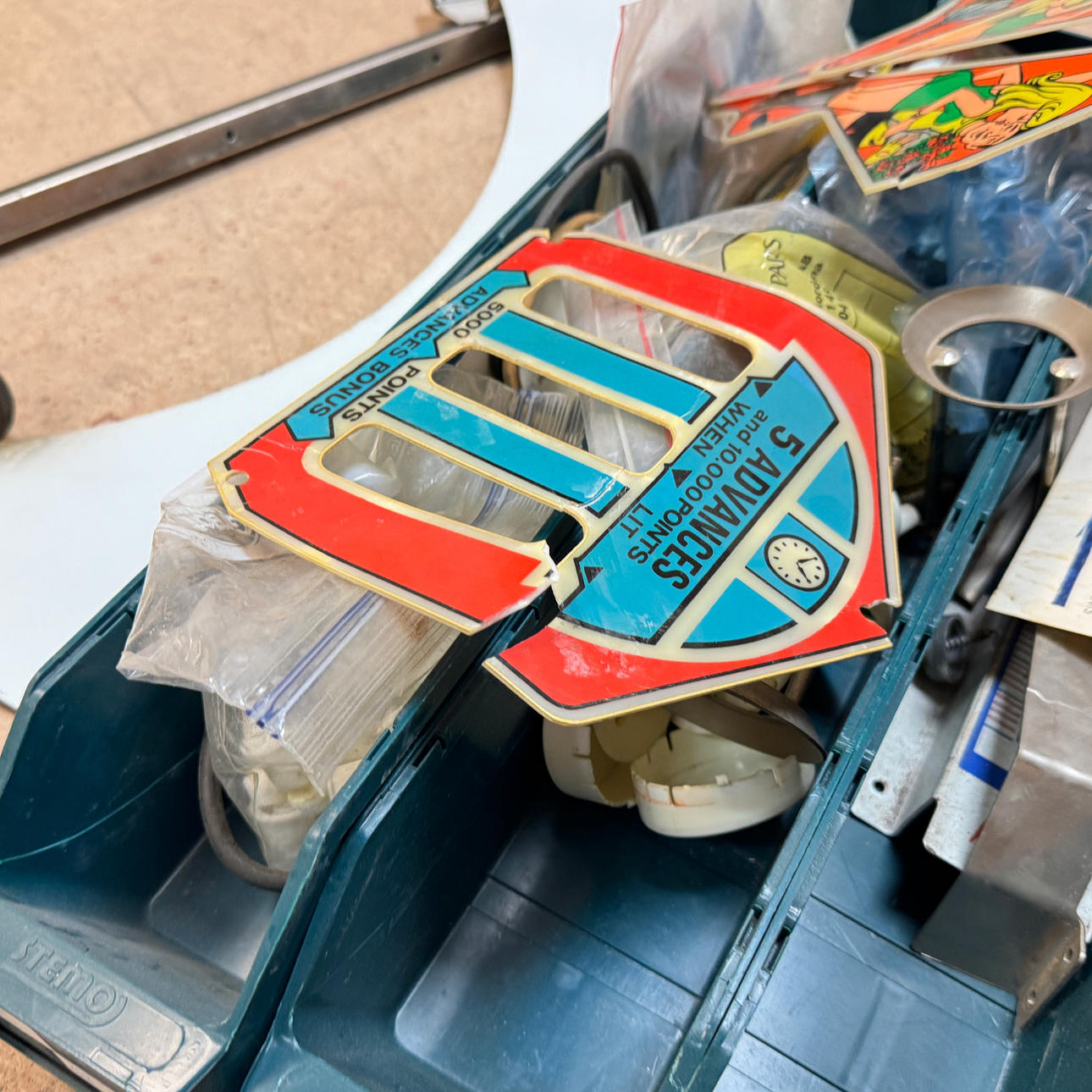 Rear glass in good condition. Cabinet in good condition for its age. Playing field and plastic ok (a broken plastic though). The game is otherwise in good shape for its age.