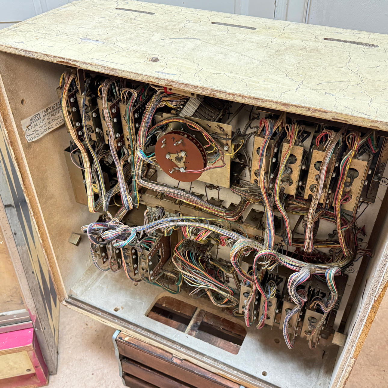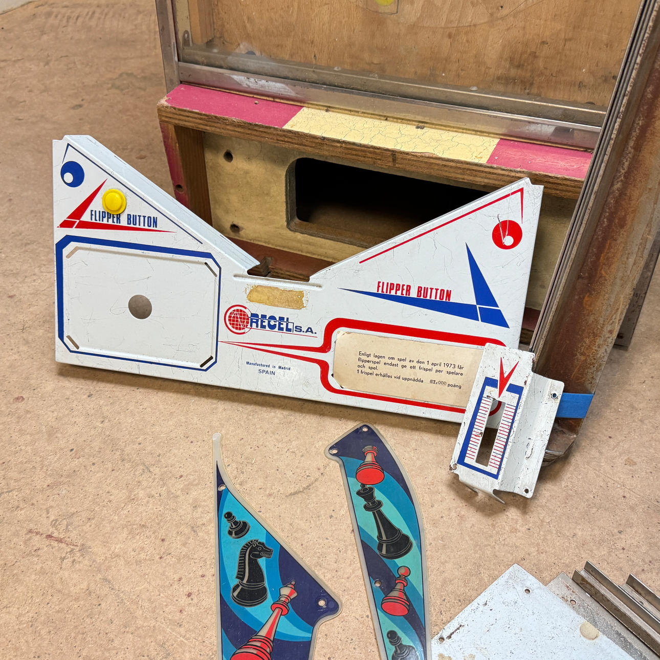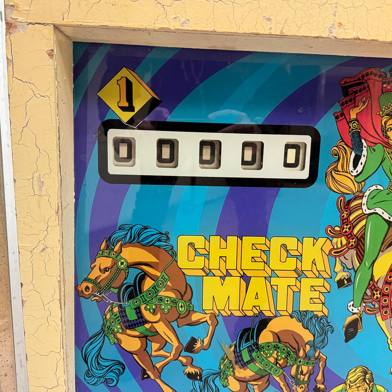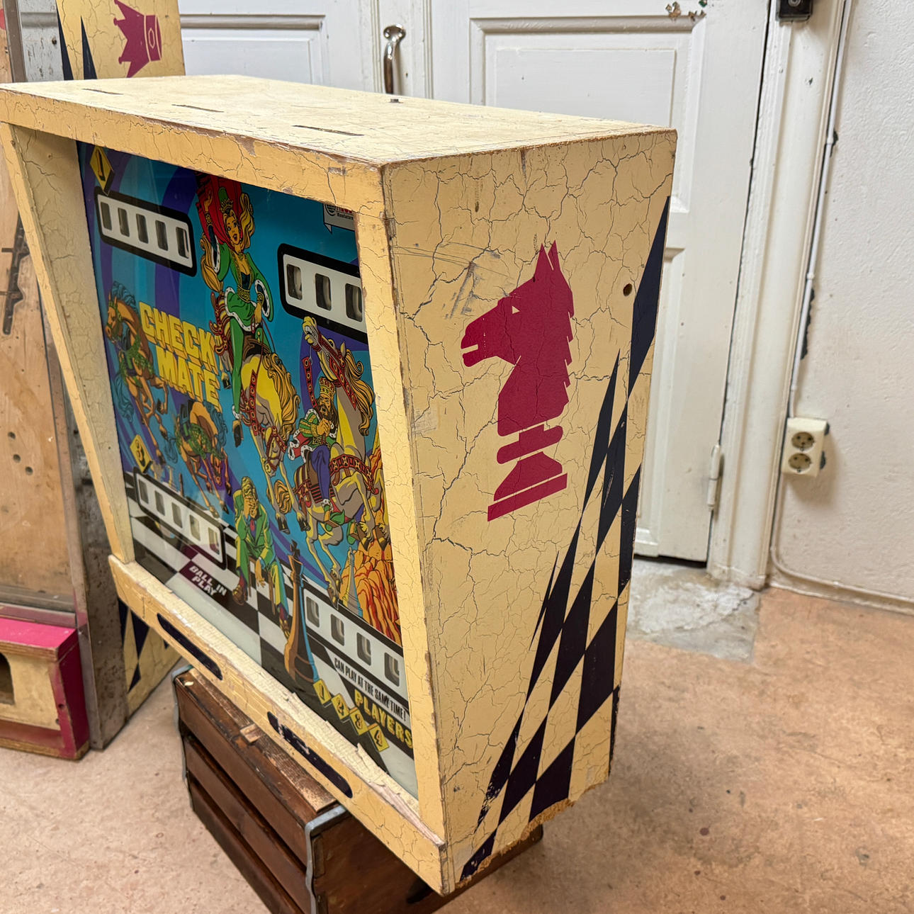 Rear glass in good condition. Cabinet ok for its age. Playing field plasters ok. Game plan bad. It lacks a back door. The game is otherwise in good shape for its age.