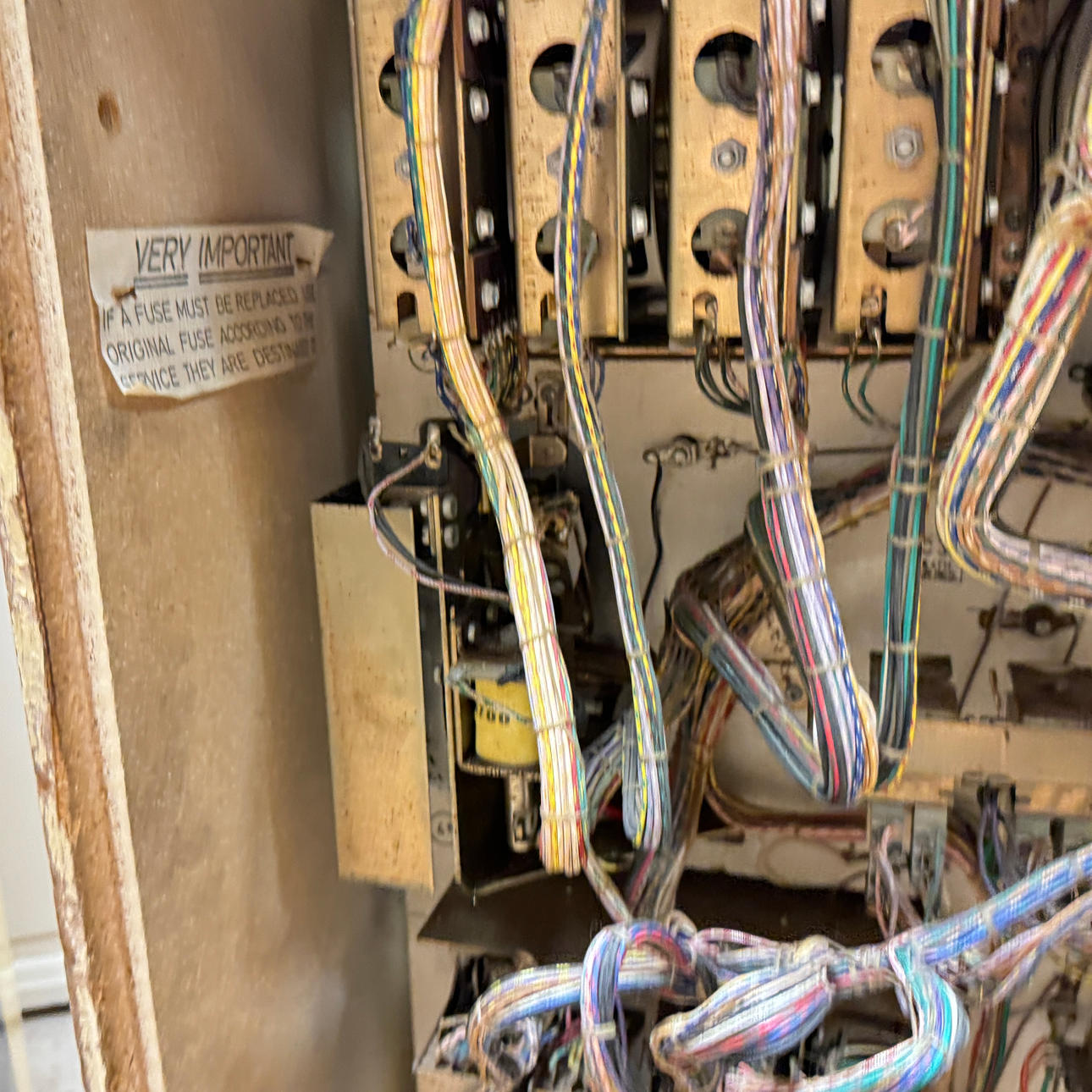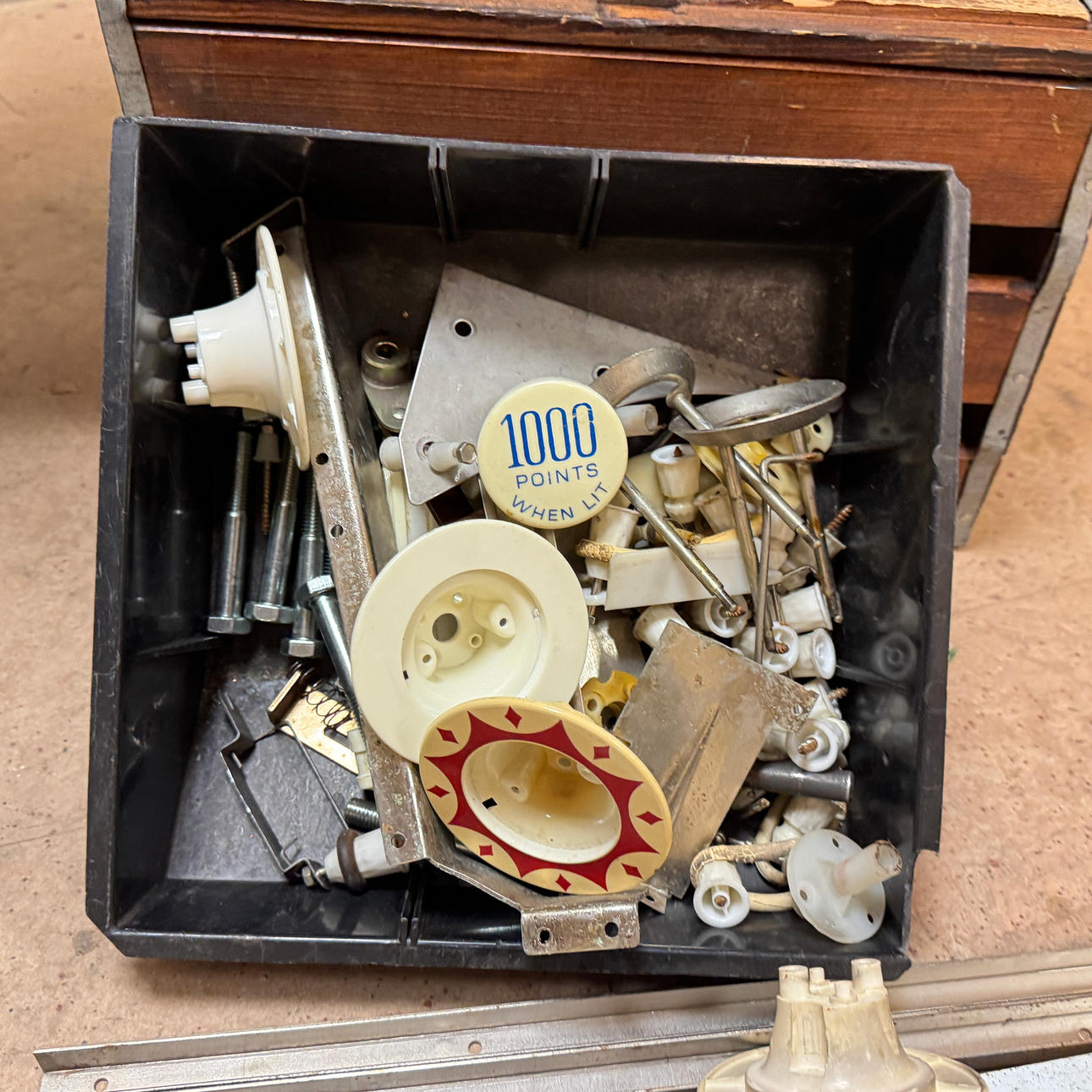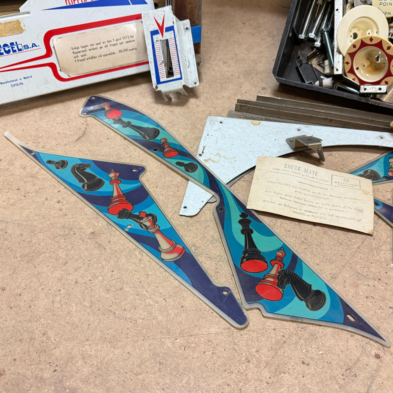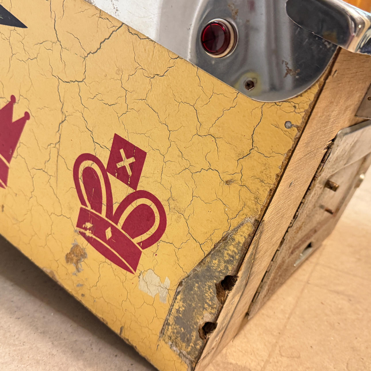 Rear glass in good condition. Cabinet ok for its age. Playing field plasters ok. Game plan bad. It lacks a back door. The game is otherwise in good shape for its age.
