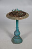 A Victorian cast iron bird bath, with a twin bird centre piece, and raised on a decorated column. Approx. 84cm (h) x 50cm (w).
