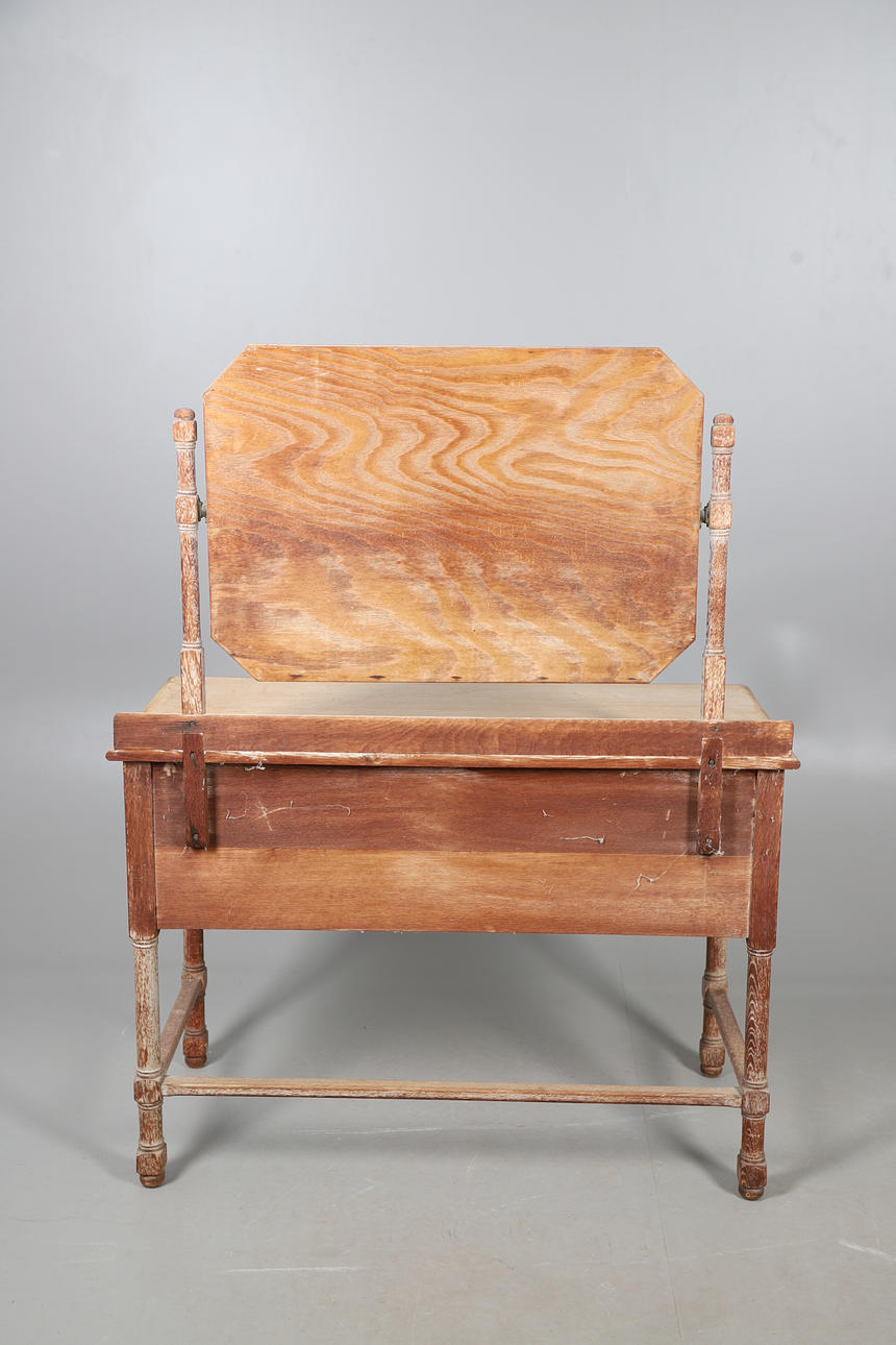 Dressing table, faded in colour, mirror with a few marks in places, otherwise in reasonable condition.