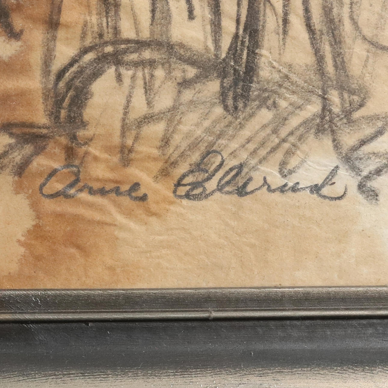 ARNE ELSRUD. CHARCOAL DRAWING. “Moonshine”, signed.