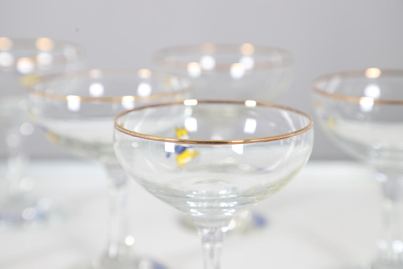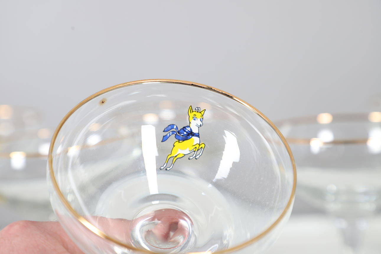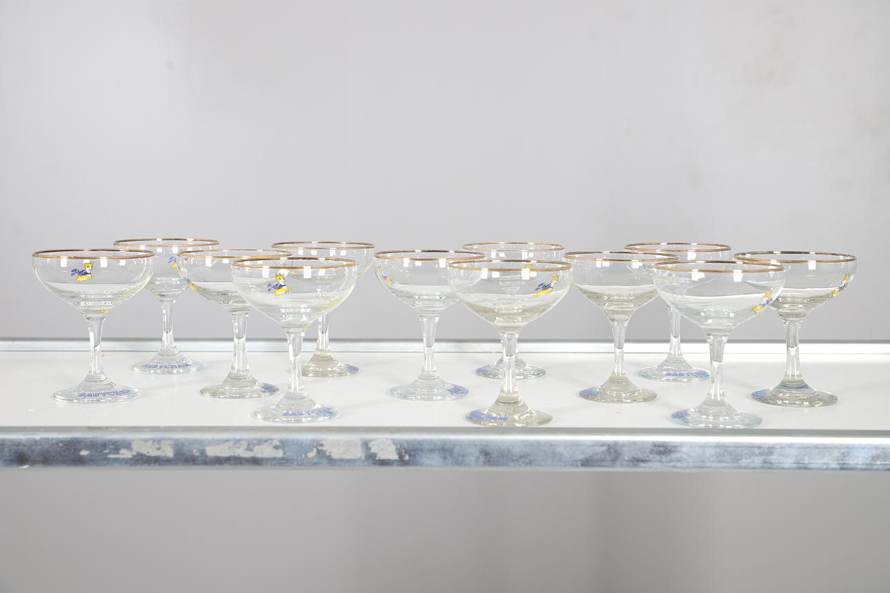 4999077. TWELVE BABYCHAM COUPE GLASSES WITH LOGO.