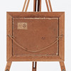Abstract composition in blue and white with cubist inspired design language. Fragmented geometric fields interact with organic elements in a dynamic and somewhat surreal construction. indistinct signed (Olof?) in ink on the back