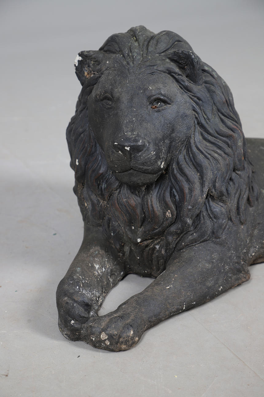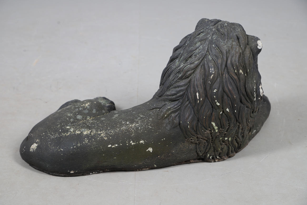 A concrete lion figure, 30cm (h) x 63cm x 35cm.