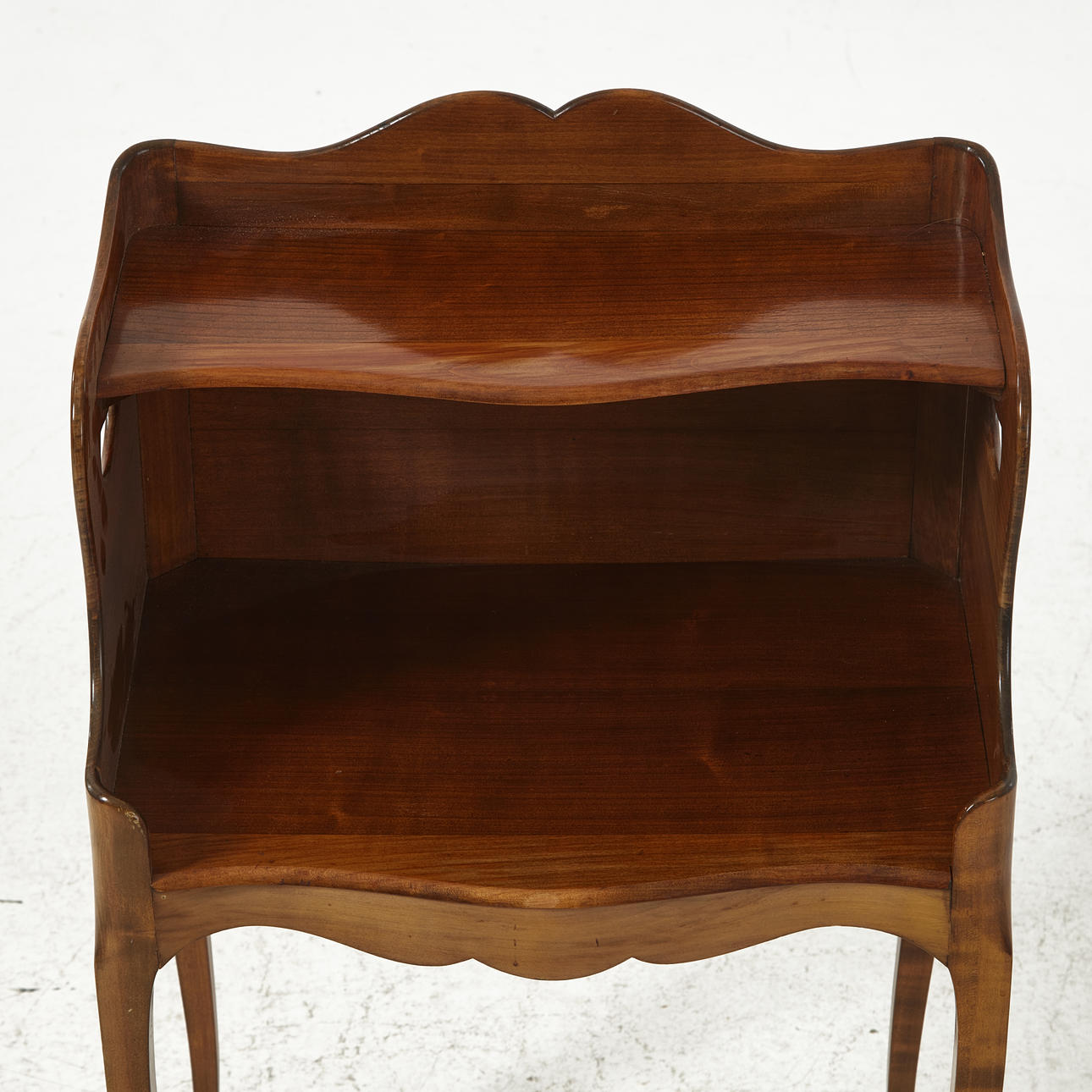 A 20th century bedside table, dark stained, rococo style.