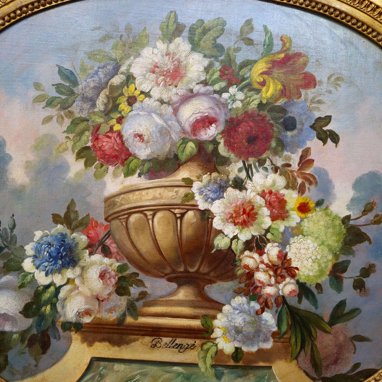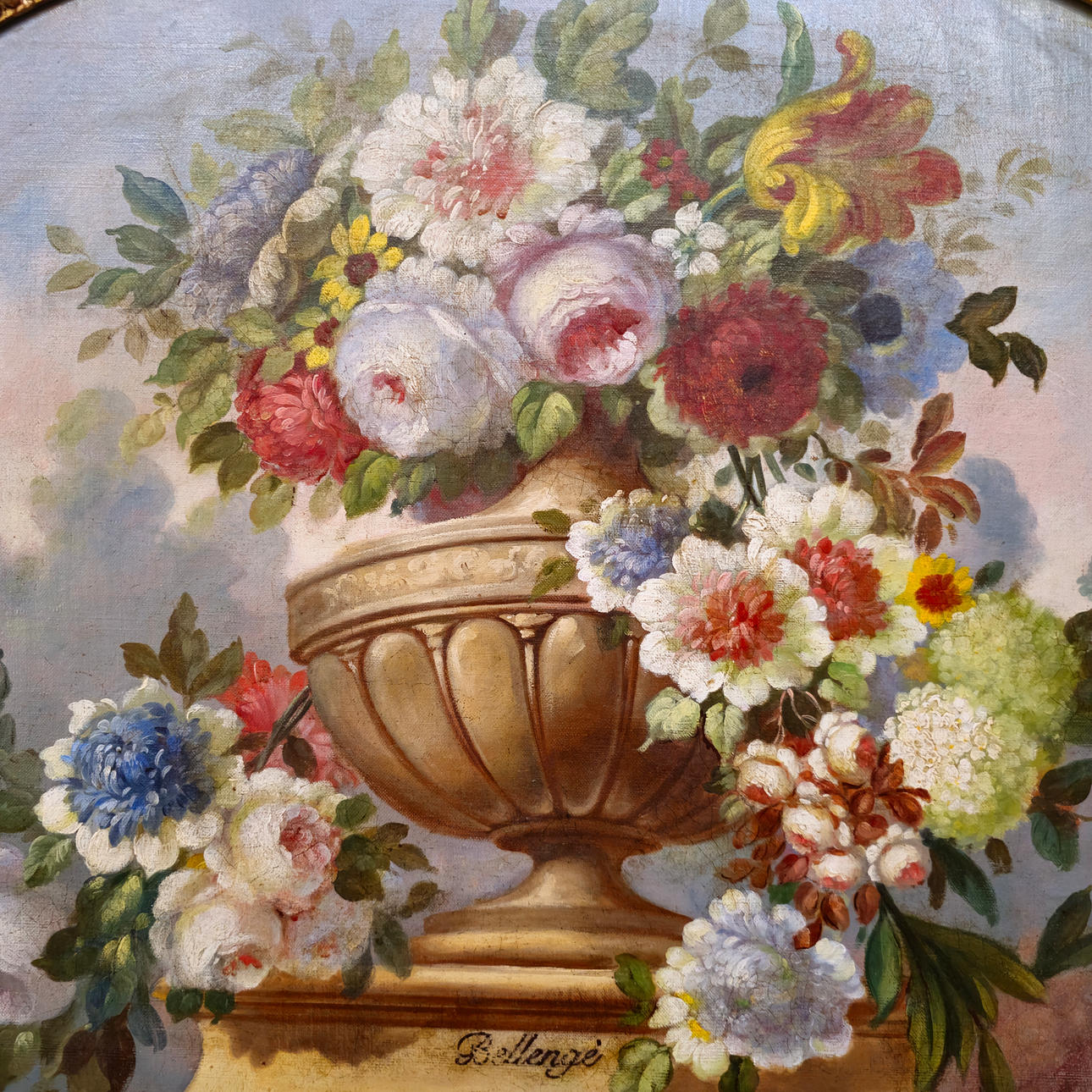 NEOCLASSICAL COMPOSITION WITH FLOWERS. OIL ON BOARD.