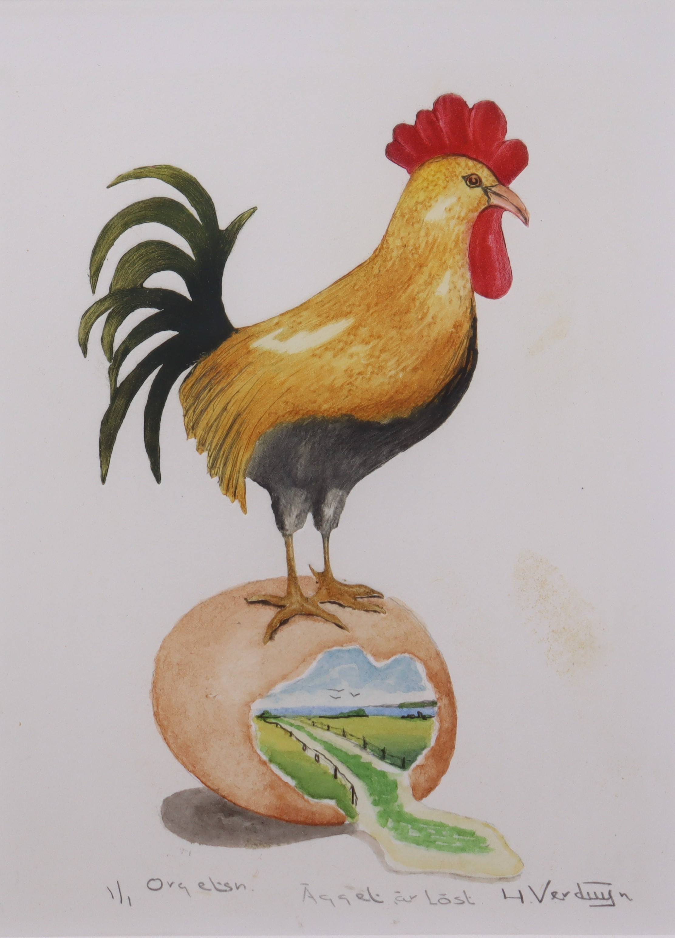 4999466. HANS VERDUIJN. etching, “The Egg Is Loose”.