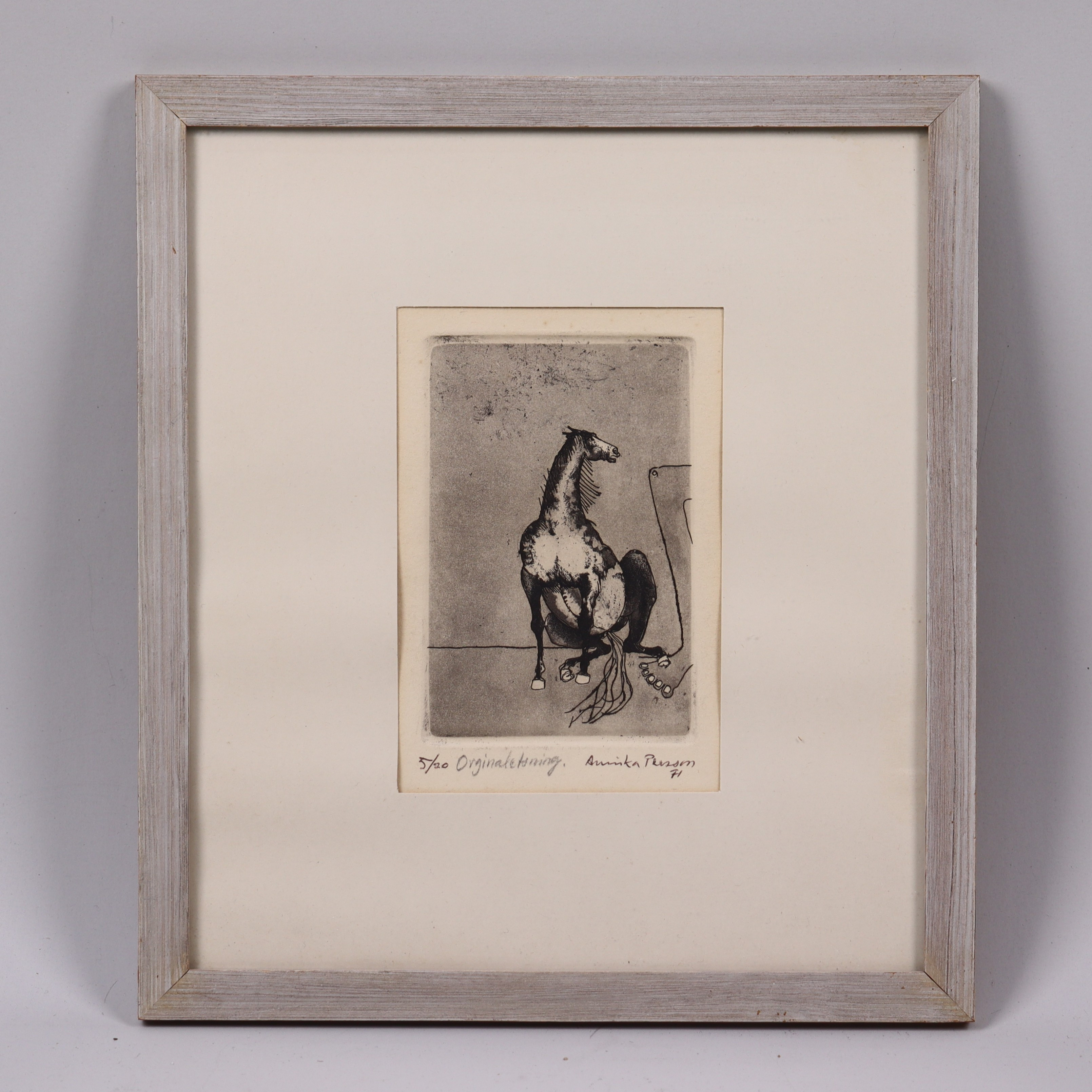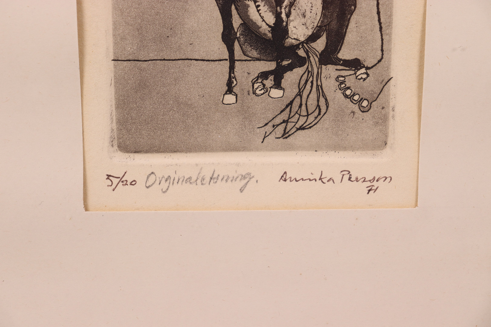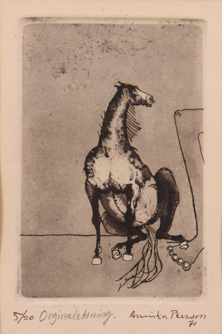 4999469. ANNIKA PERSSON. etching, seated horse.