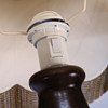 Stained wood with textile screens. Total height 151 cm. Height without screens 125 cm.