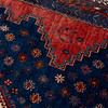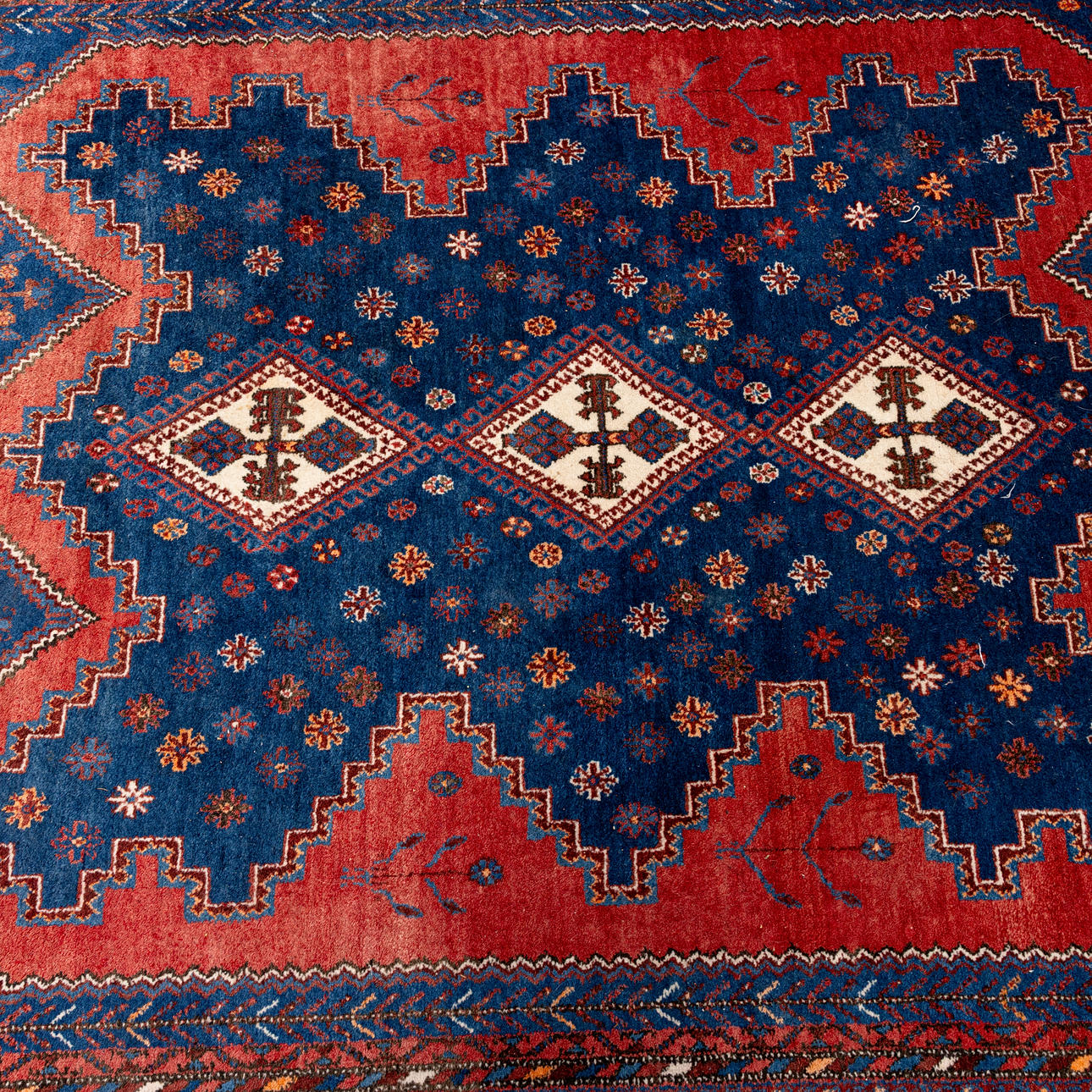 Blue bottom, geometric patterns.