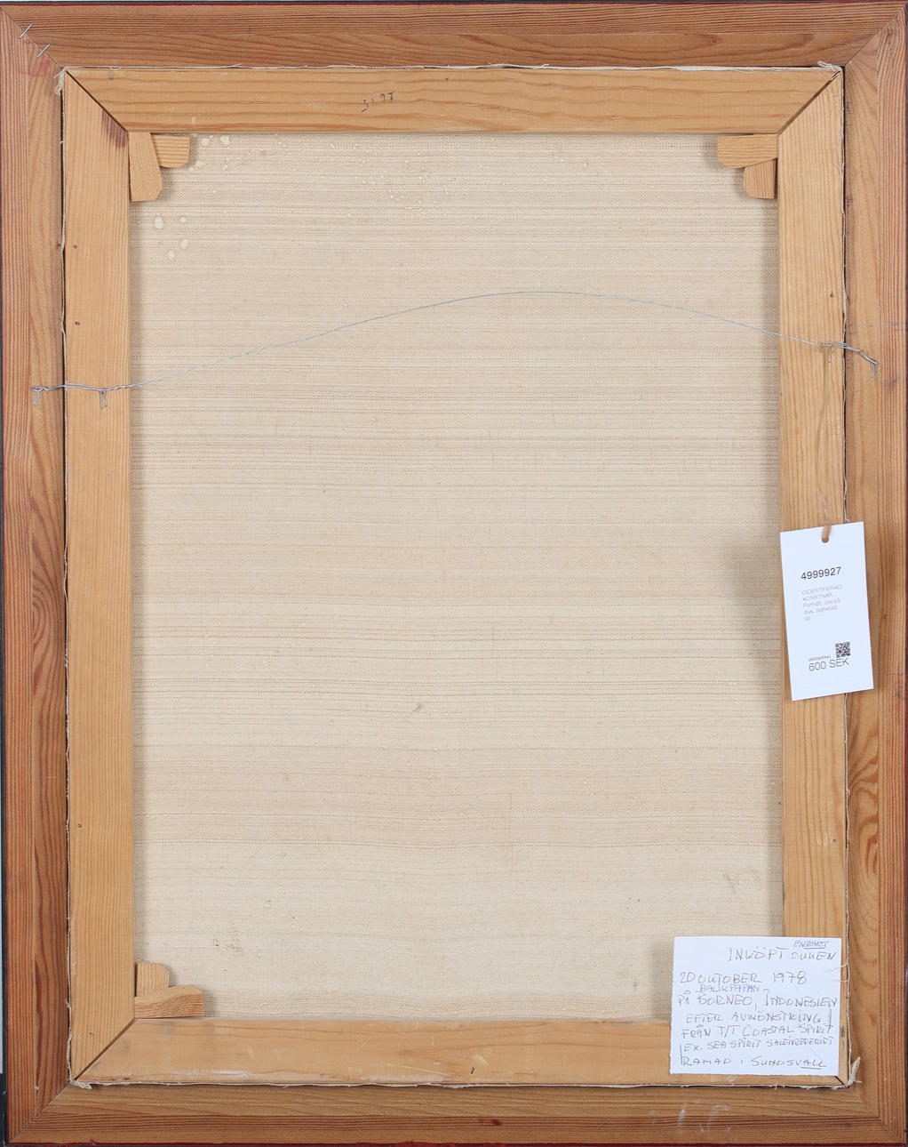 Purchased in Borneo 1978, design area approx. 62 x 47 cm, frame dimensions approx. 72 x 57 cm.