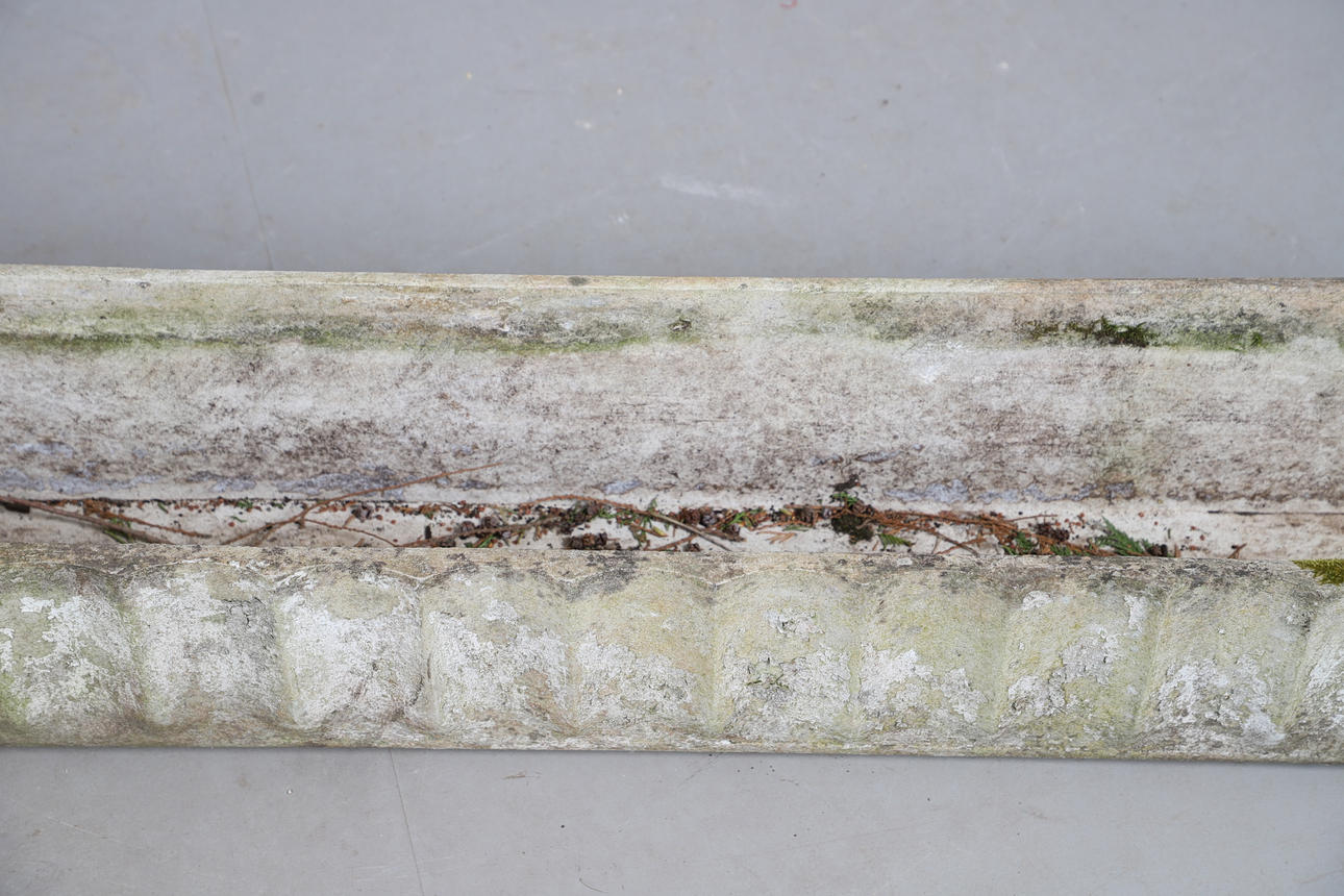 Wear commensurate with age and use. Weathered condition with moss and lichen growth, see online images.