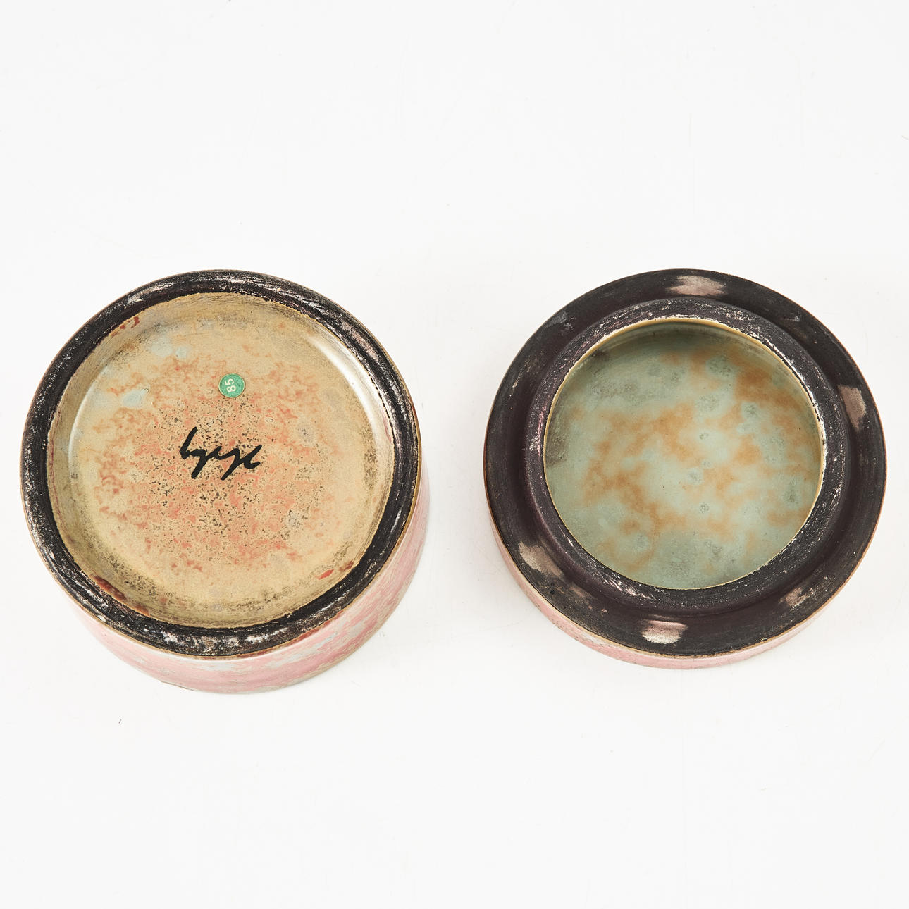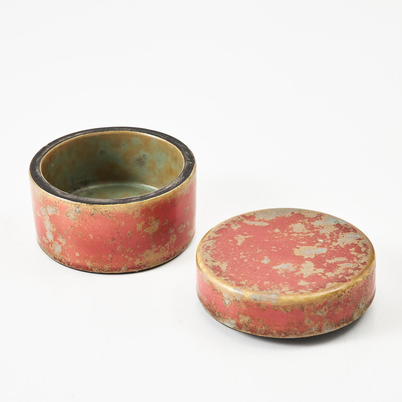 HIS HEDBERG. Box with cover, strong fire faience, signed.