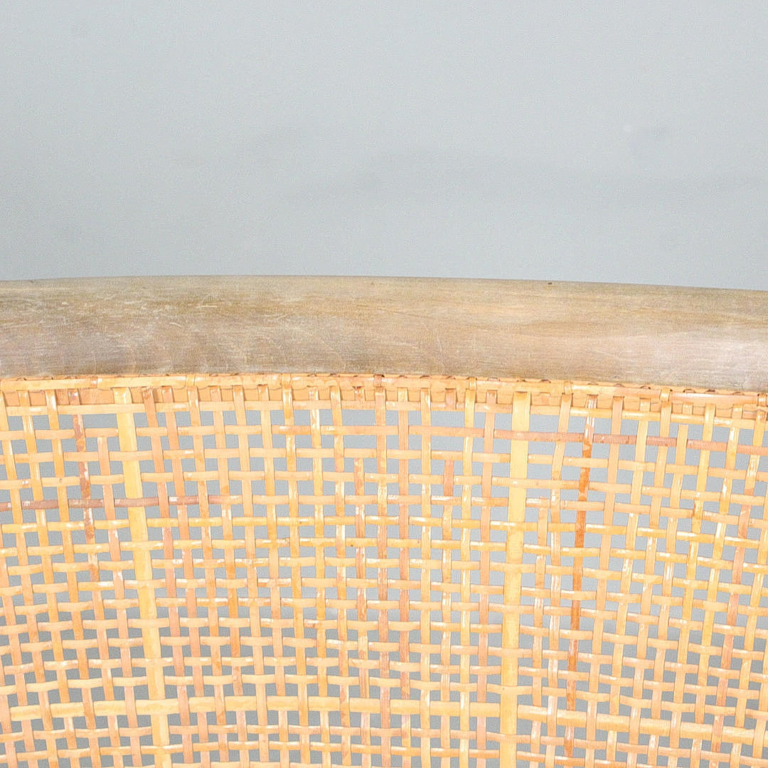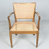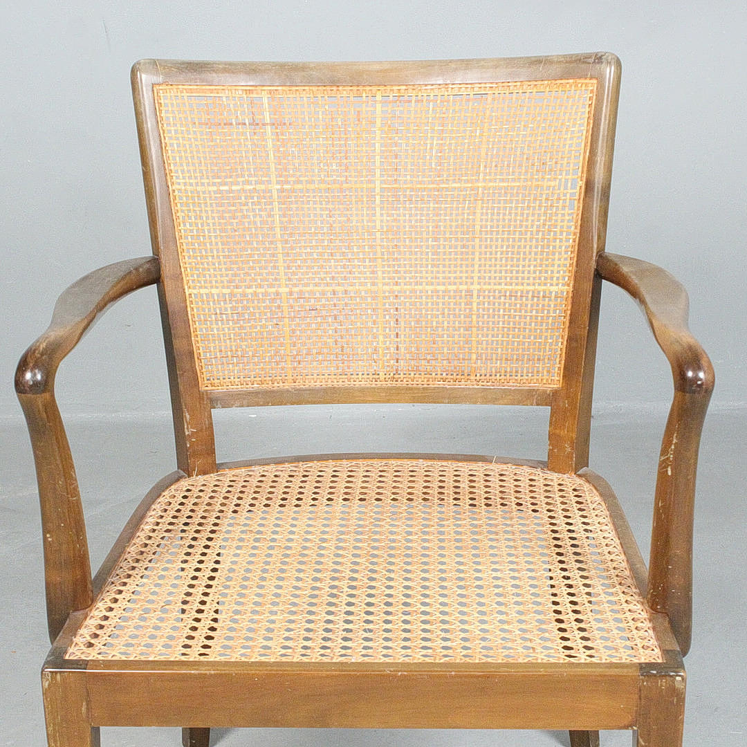 Armchair/armchair with a glazed wood frame and a Viennese wicker seat and backrest, equipped with armrests,
