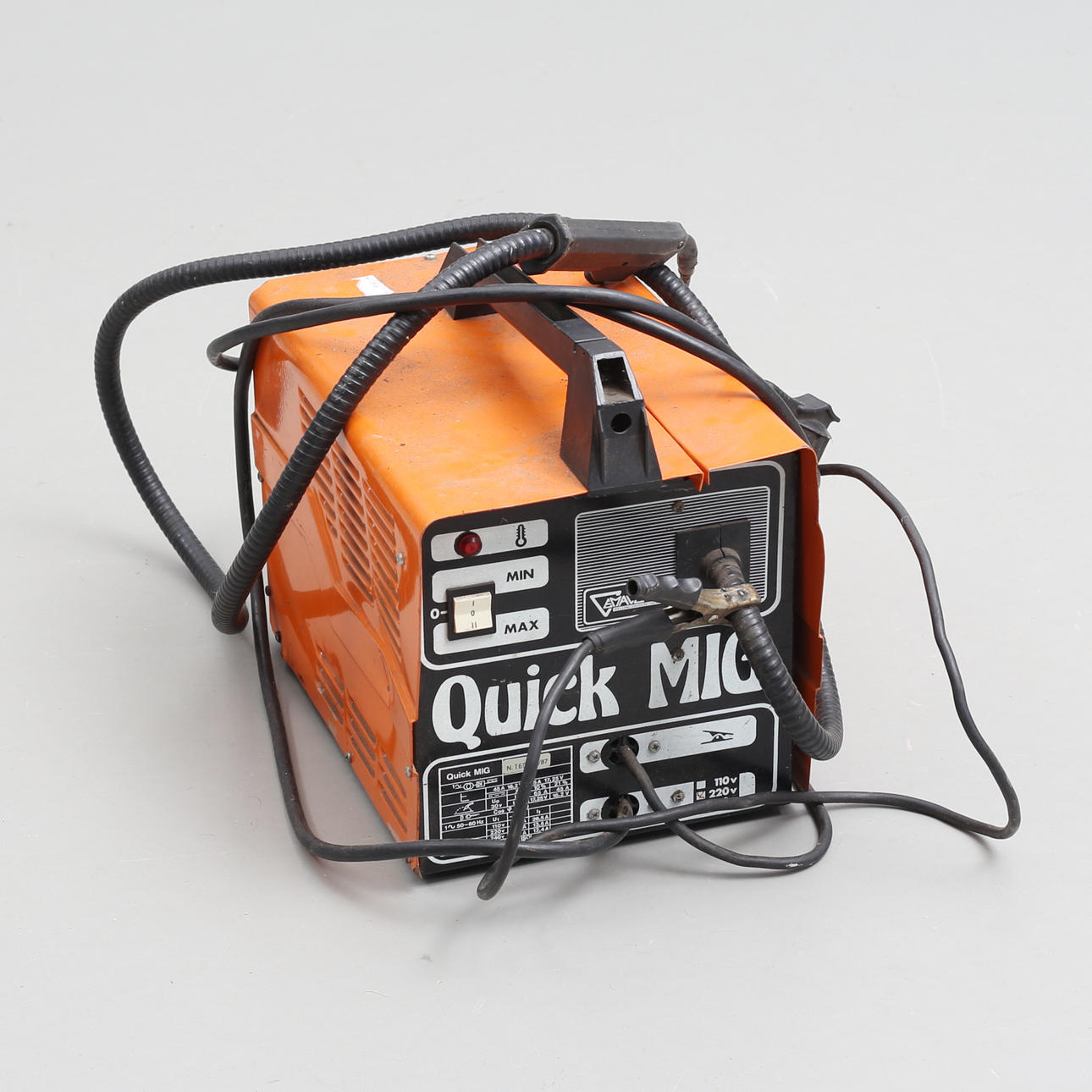 Size carton Tooltec 43 x 22 x 27 cm Size Quick Mig 220 V, 37 x 24 x 34 cm.