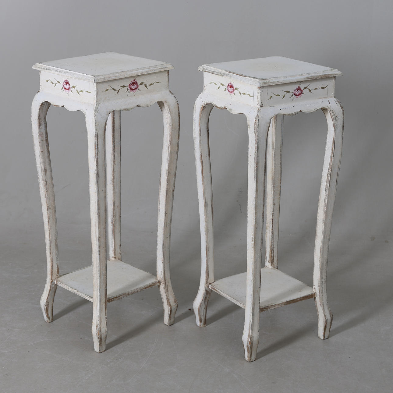 Pedestals, painted composite Upper top plate with length and width 32,5, height 91 cm.