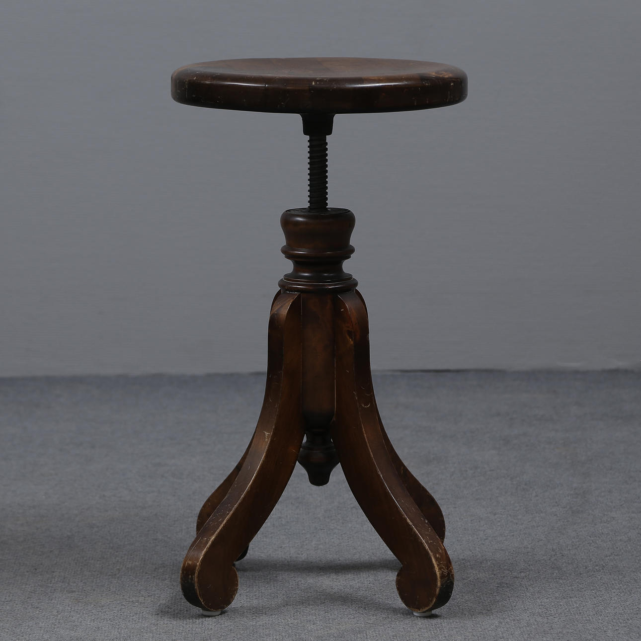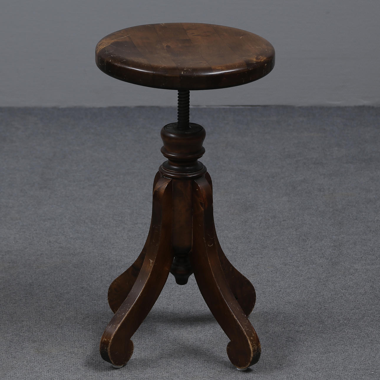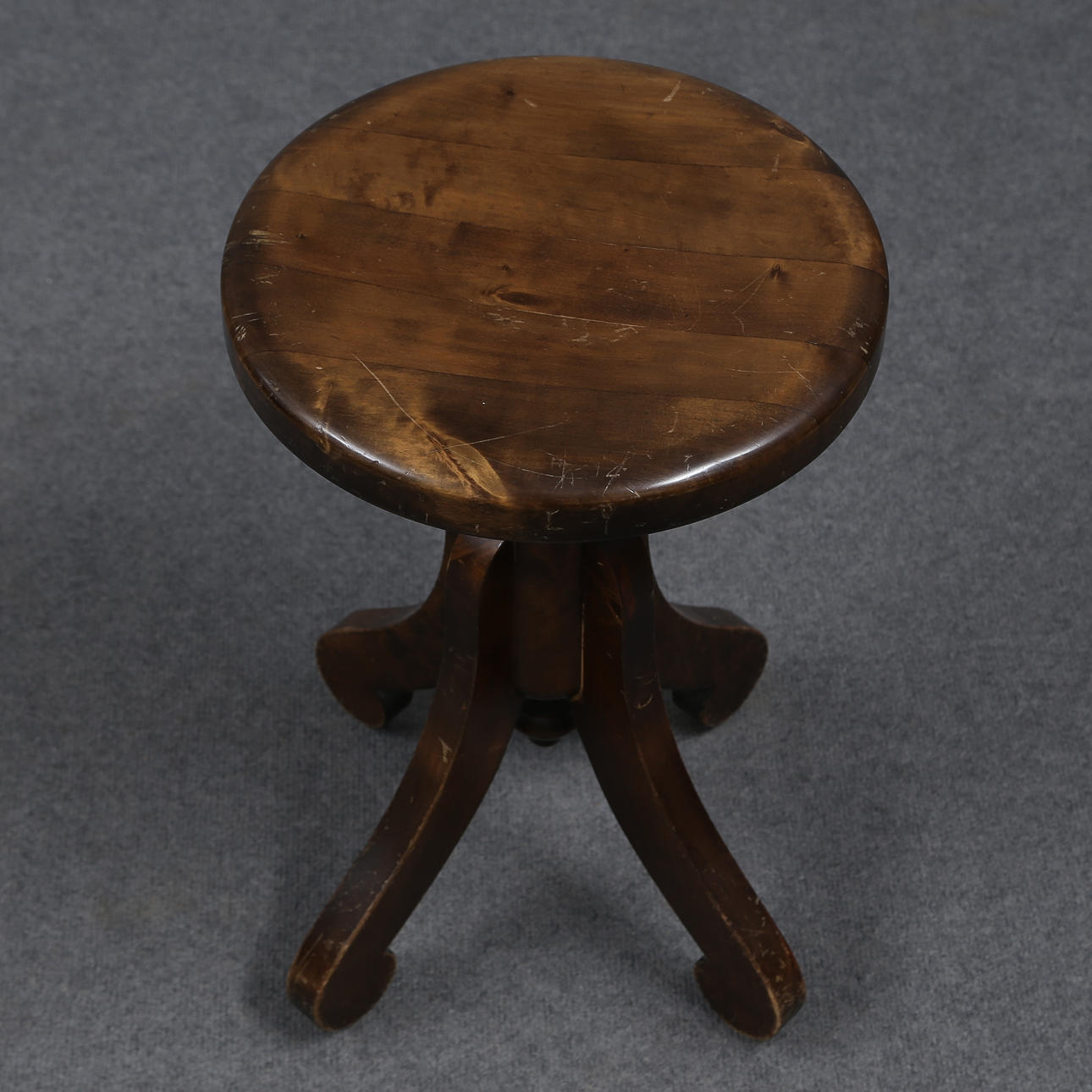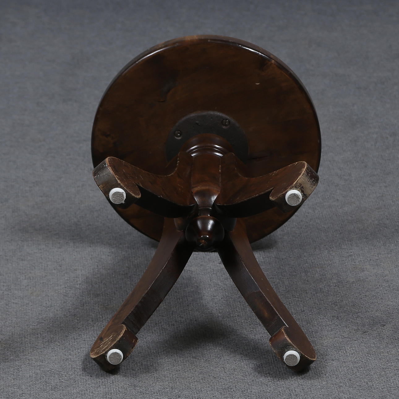 AN EARLY 20TH CENTURY BEADED BIRCH SPINNING STOOL.