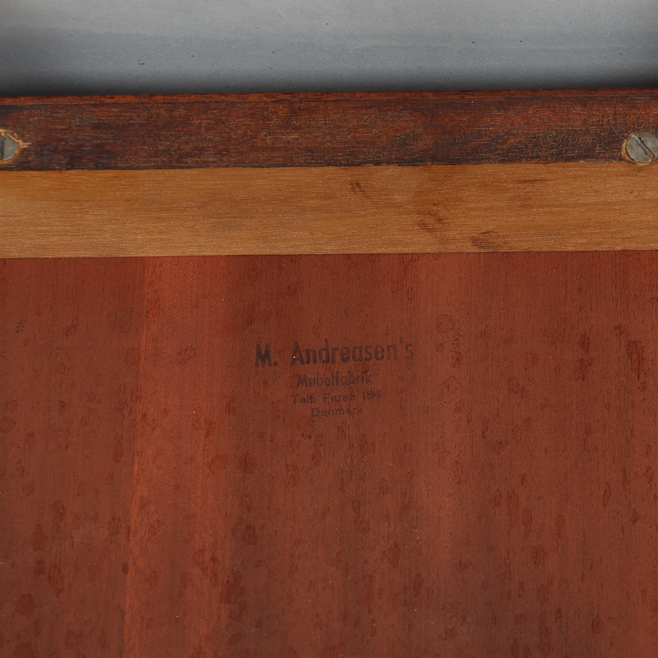 Mahogany side table with profiled frame and undulating edge. Made and branded at M. Andreasen's Møbelfabrik, Farsø.