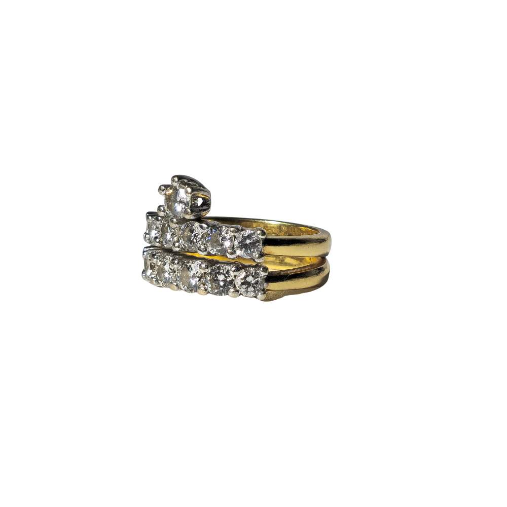 Ring with 18-carat bicolor gold frame with 13 brilliant-cut diamonds set in a clip.