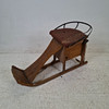 Wood, metal, textile upholstered seat. Length approx. 100, width 43, height 56 cm.