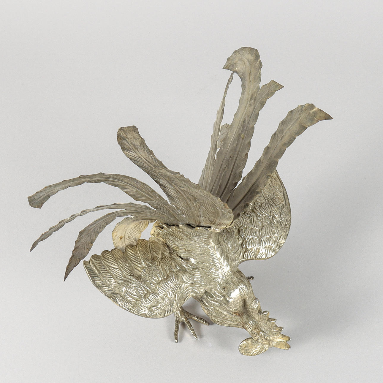 5000622. TABLE DECORATION Rooster, white metal, large.
