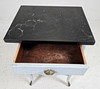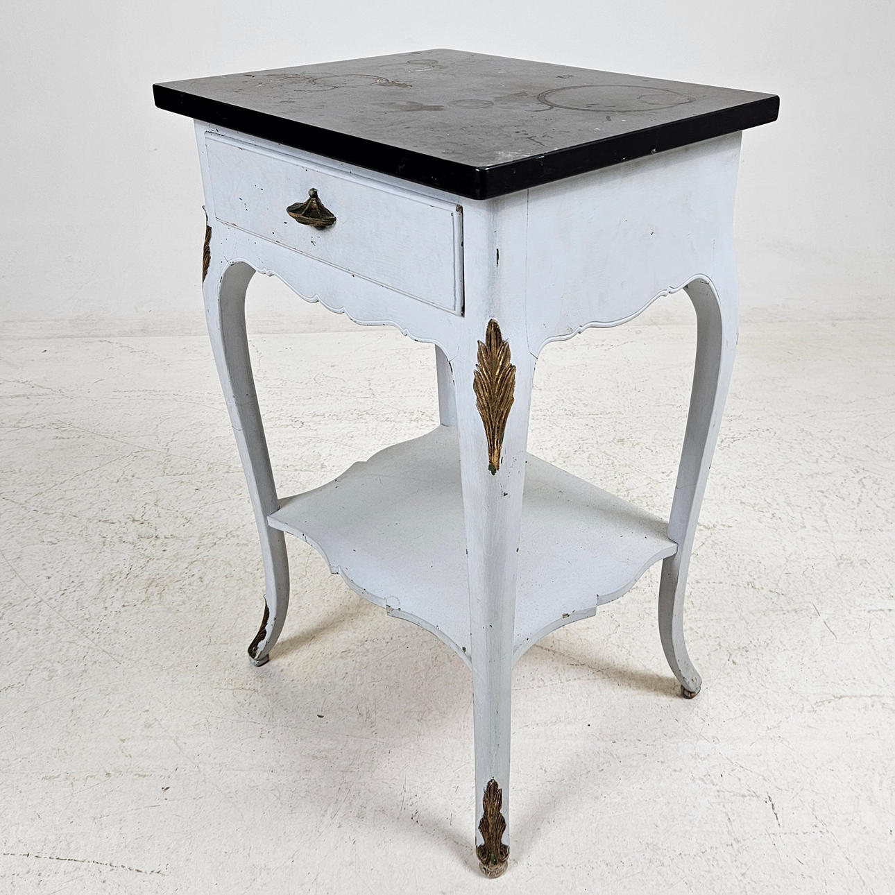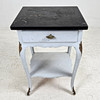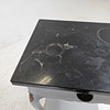 Loose black disc, box, pivoted legs. Length approx. 45, width 36, height 69 cm.