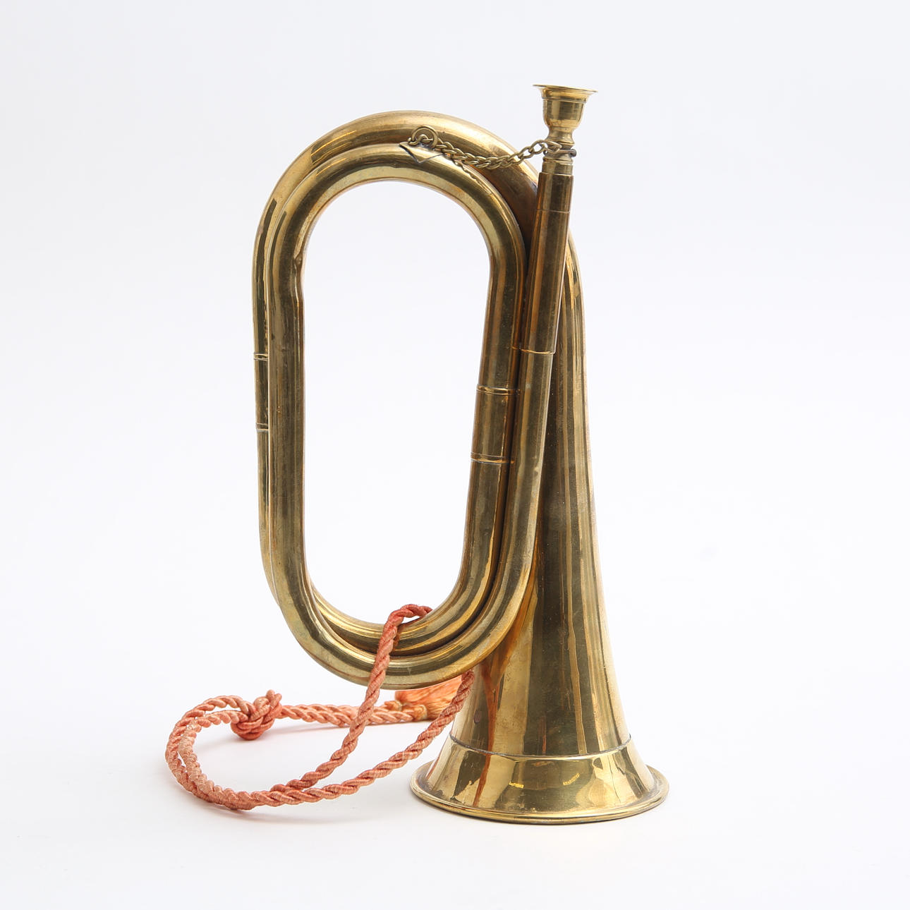 A brass hunting horn.