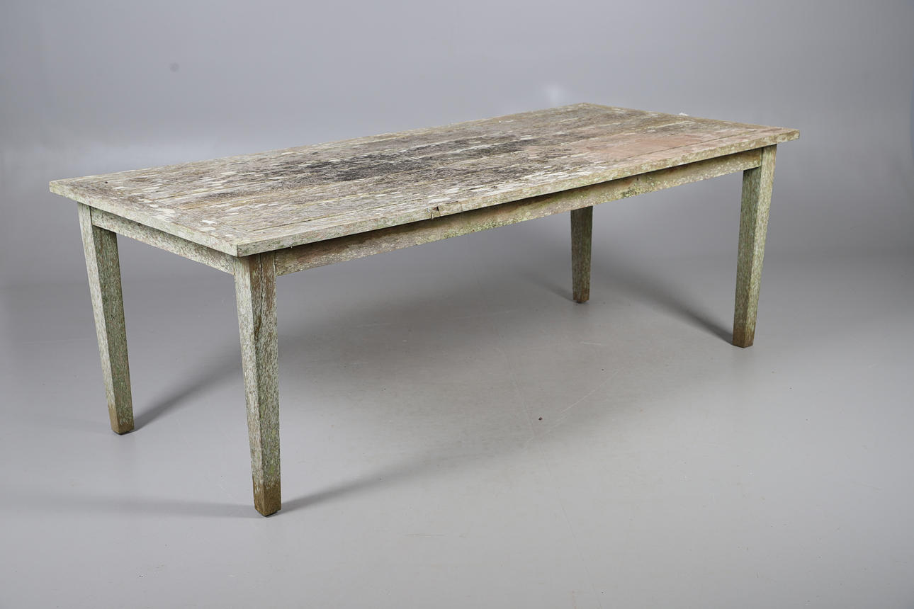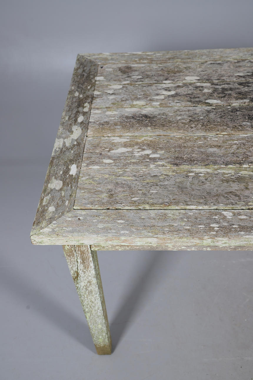 A TEAK GARDEN TABLE.