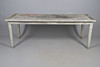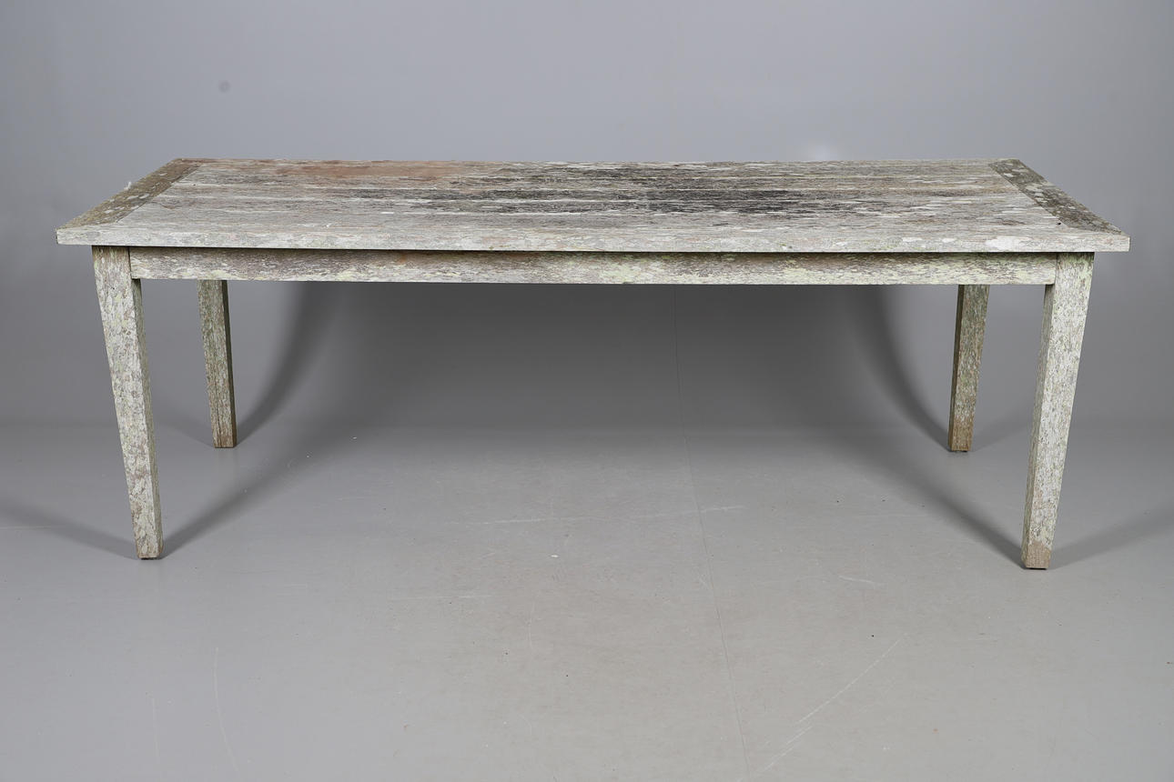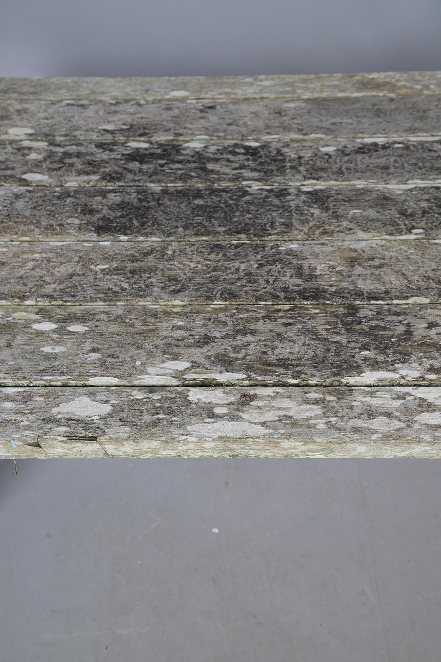 the rectangular slatted top raised on square supports, 210cm x 95cm x 75cm high.