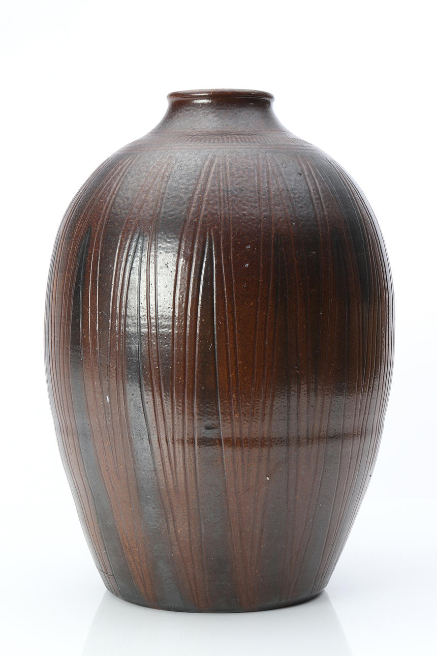 ARTHUR W ANDERSSON. FLOOR VASE. Salt-glazed stoneware. Wallåkra. Marked and signed underneath.