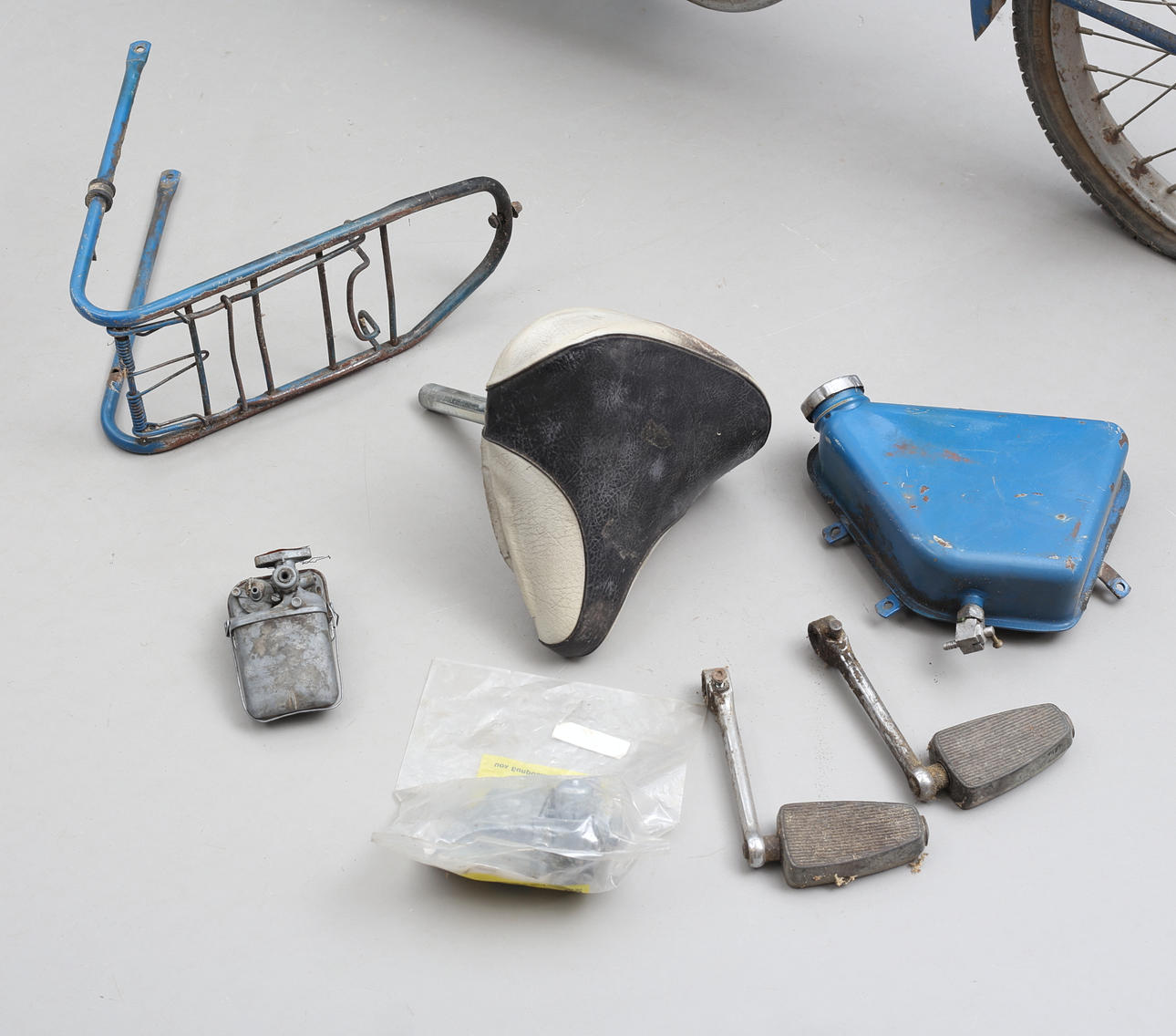 Saddle, luggage rack, tank, carburettor and pedals are included loosely.