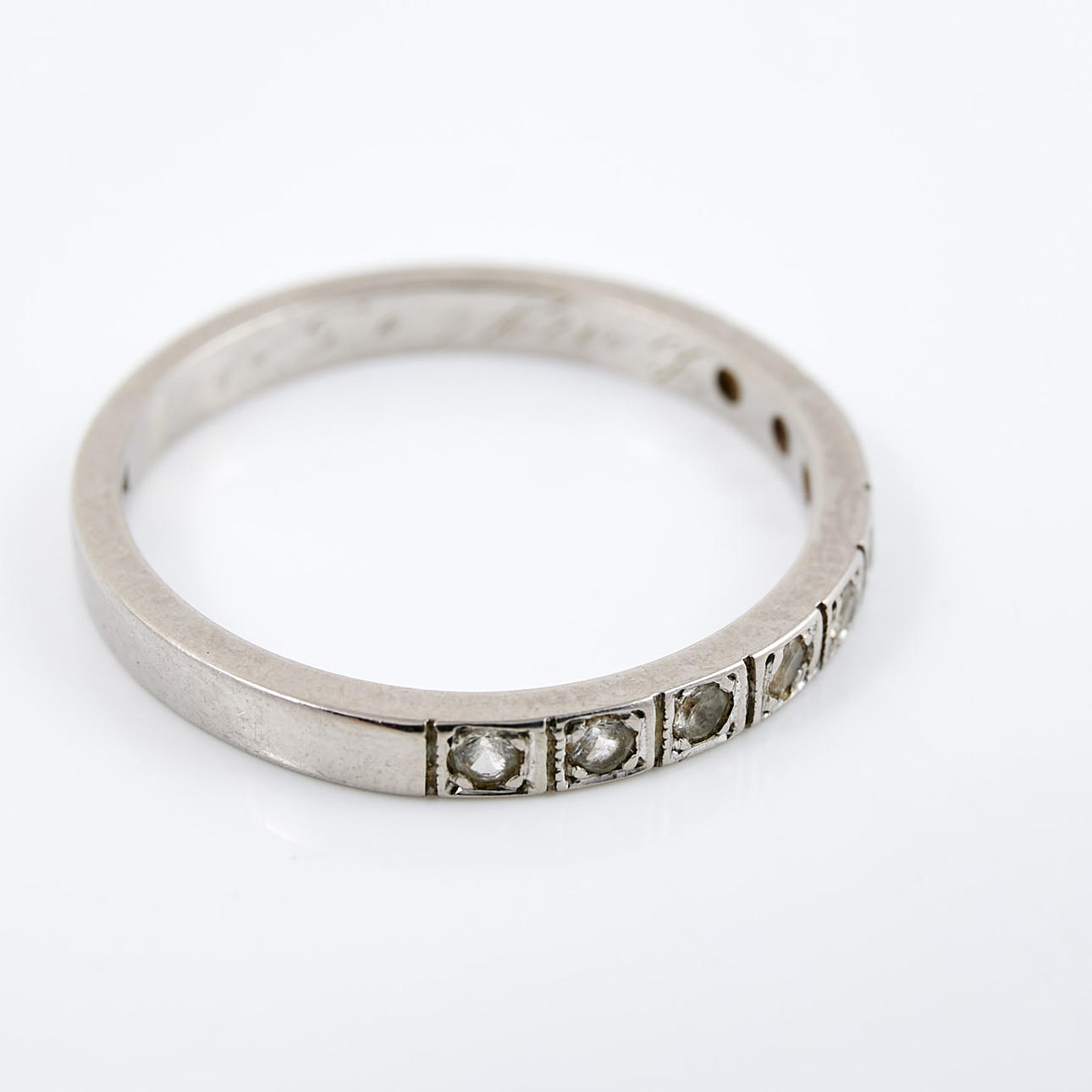 5000786. RING. Half-alliance ring, 18k white gold, octagonal cut white sapphires, Trege Guldsmedsaktiebolaget, Gothenburg, 1957.