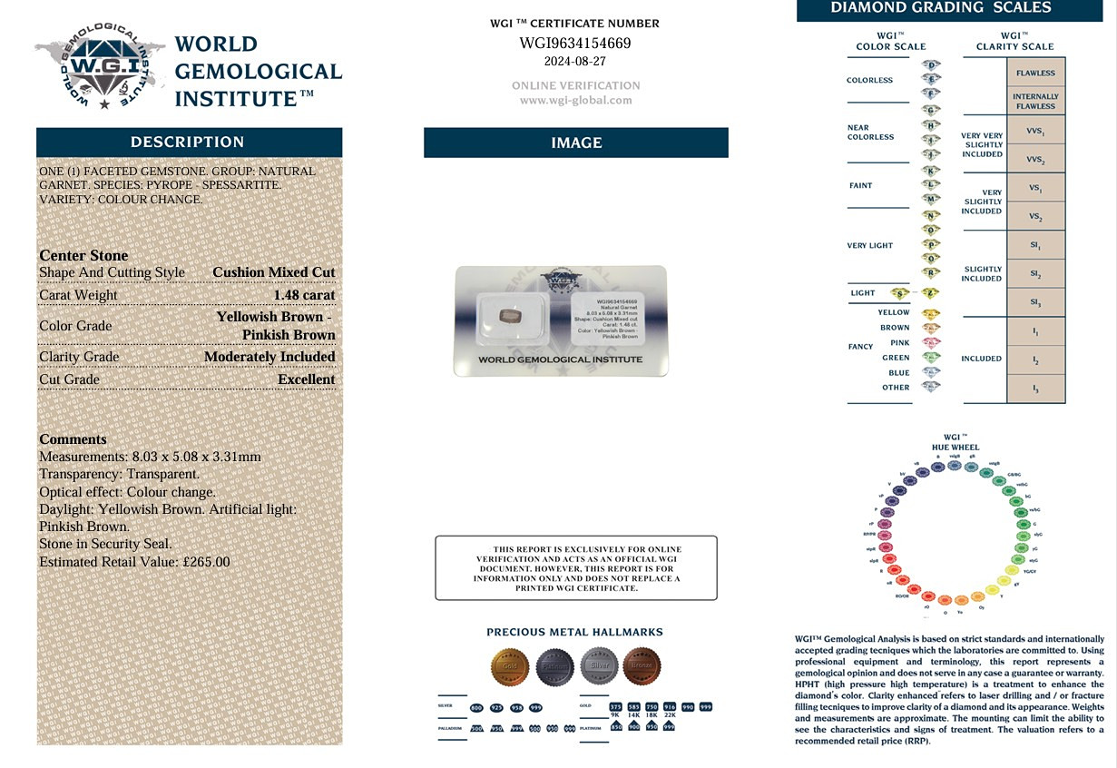 5000811. LOOSE CERTIFIED GARNET 1.48CT.