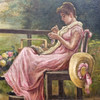 5000830. YOUNG MAN SEWING. OIL ON CANVAS. ANONYMOUS.