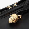 Folded model in black lambskin, details with clear passpools, hanging clochette with keys and skull clasp in yellow metal, two-sided zipper, lined in black textile, inside with two pockets, one with zipper, marked “Alexander Mcqueen made in Italy”, dimensions approx. 33 x 16 x 5 cm