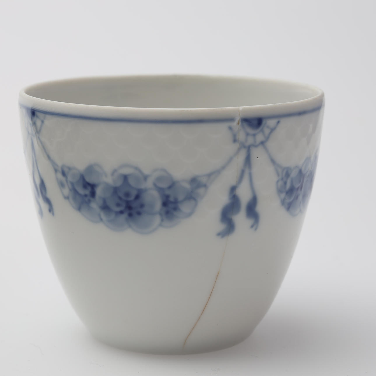 Normal wear and tear, occasional cracks and chips, rejection on the bottom edge of the jug.