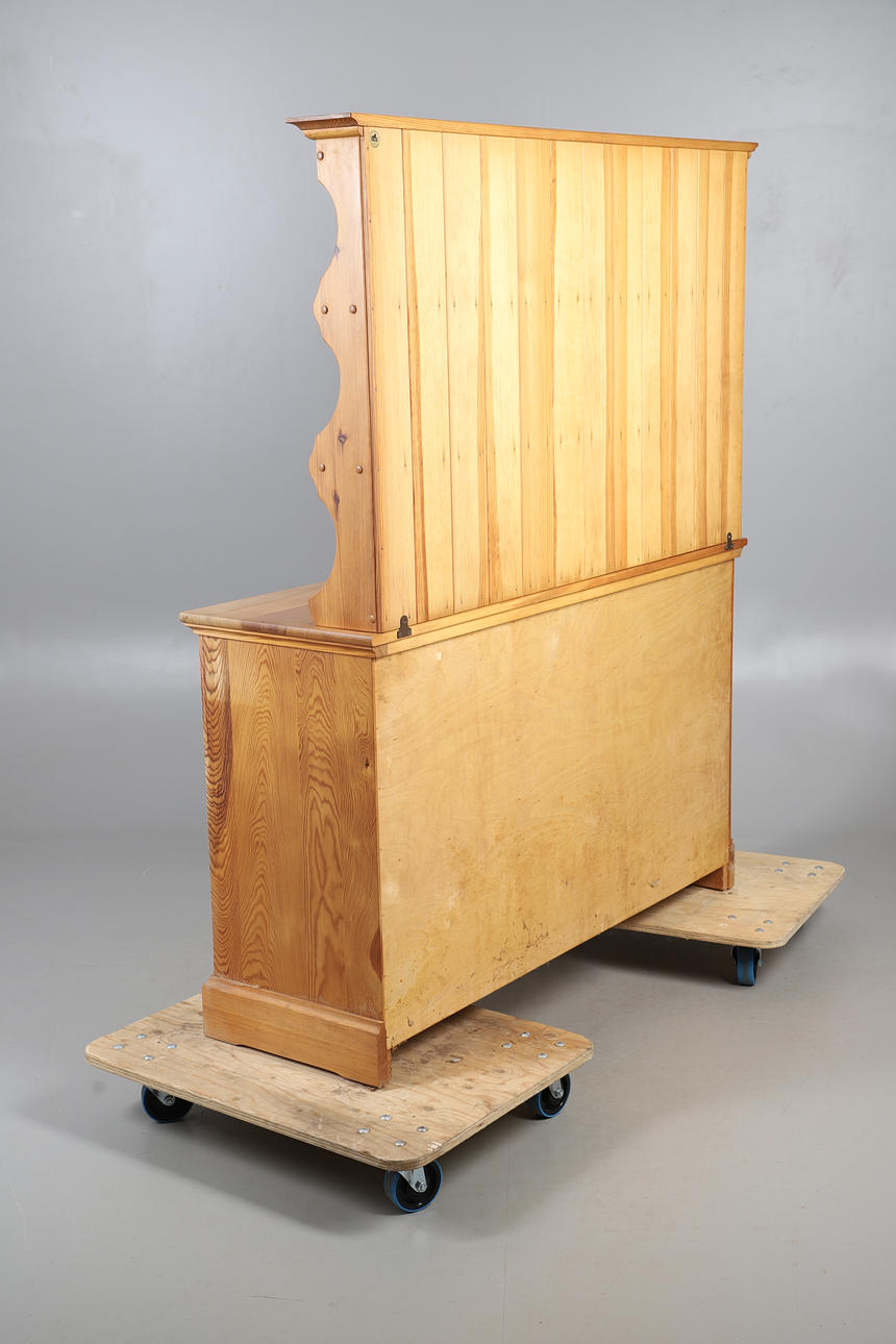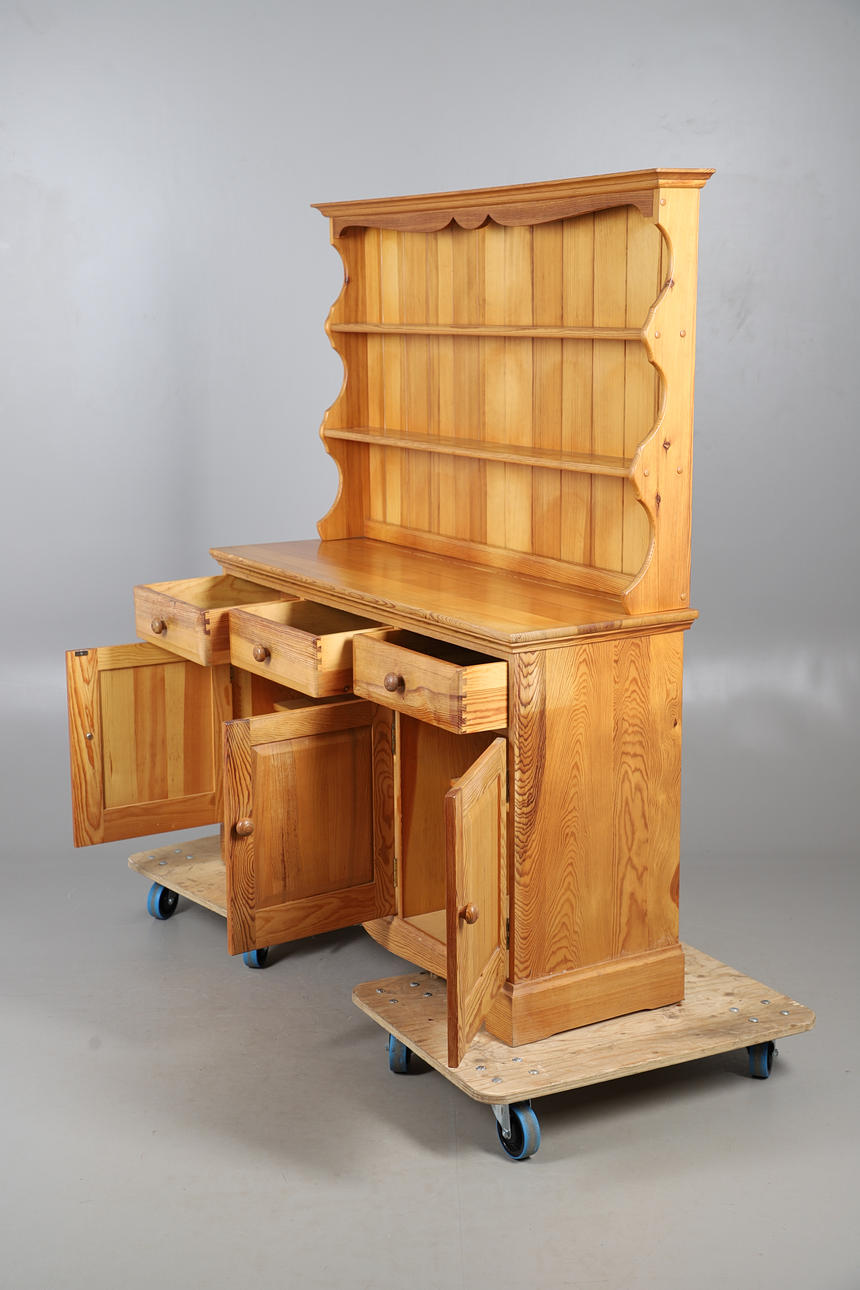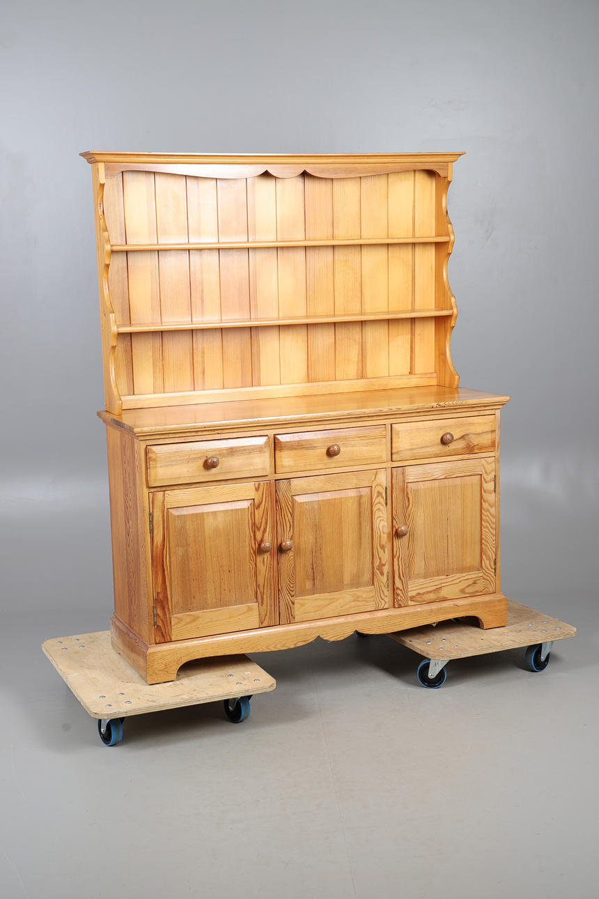 with plate rack over three drawers and cupboard base, 157cm high x 134cm wide x 45cm deep.
