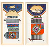 Monogram signed, painted tiles, outer dimensions 32 x 17,5 cm each.
