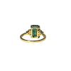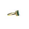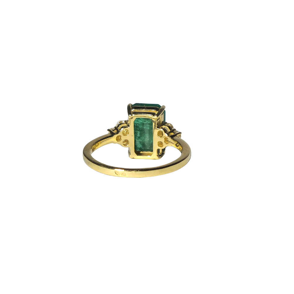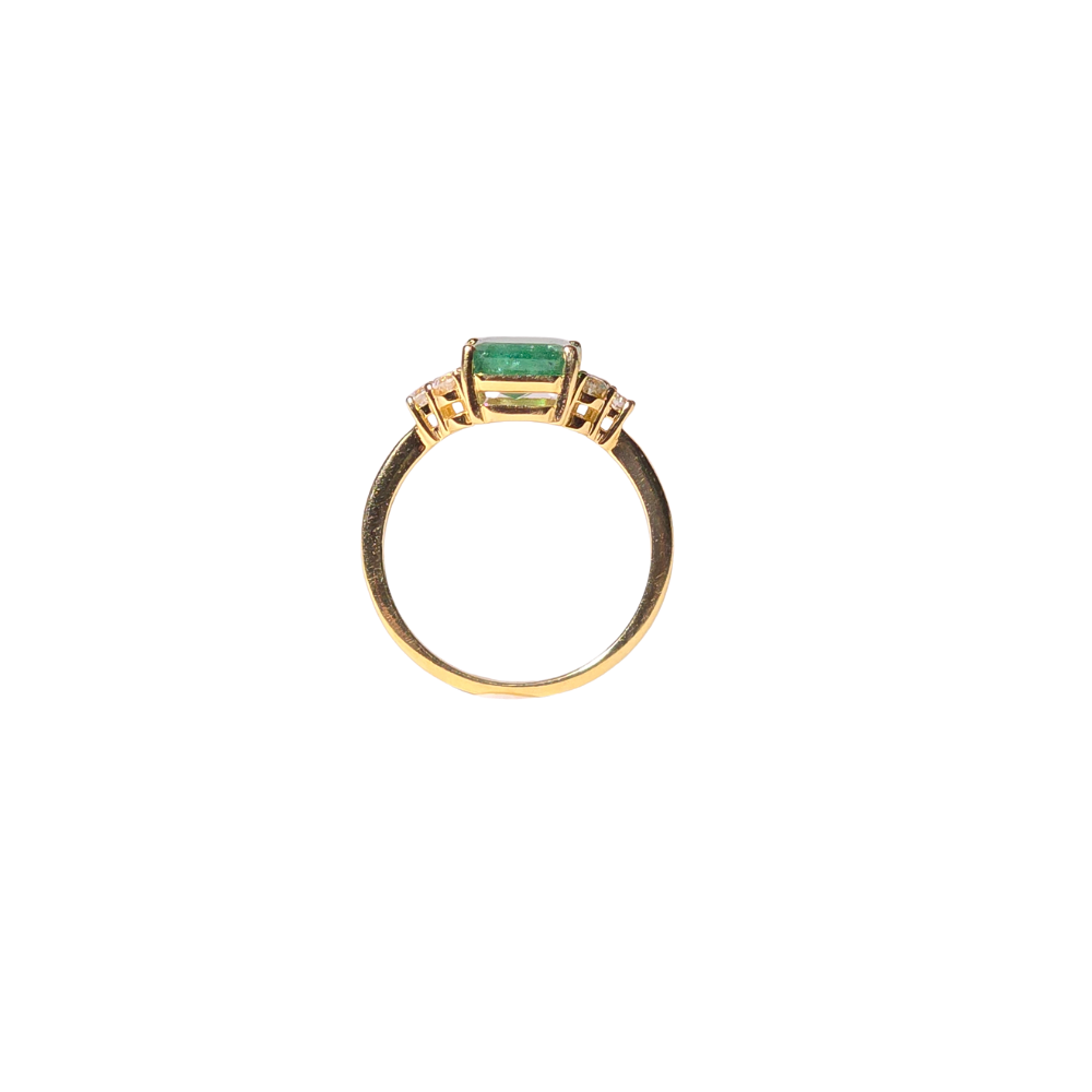 18 carat yellow gold with 3 carat emerald. Brilliant-cut side diamonds set in staples of approx. 0.15 carats. total.