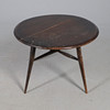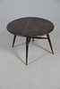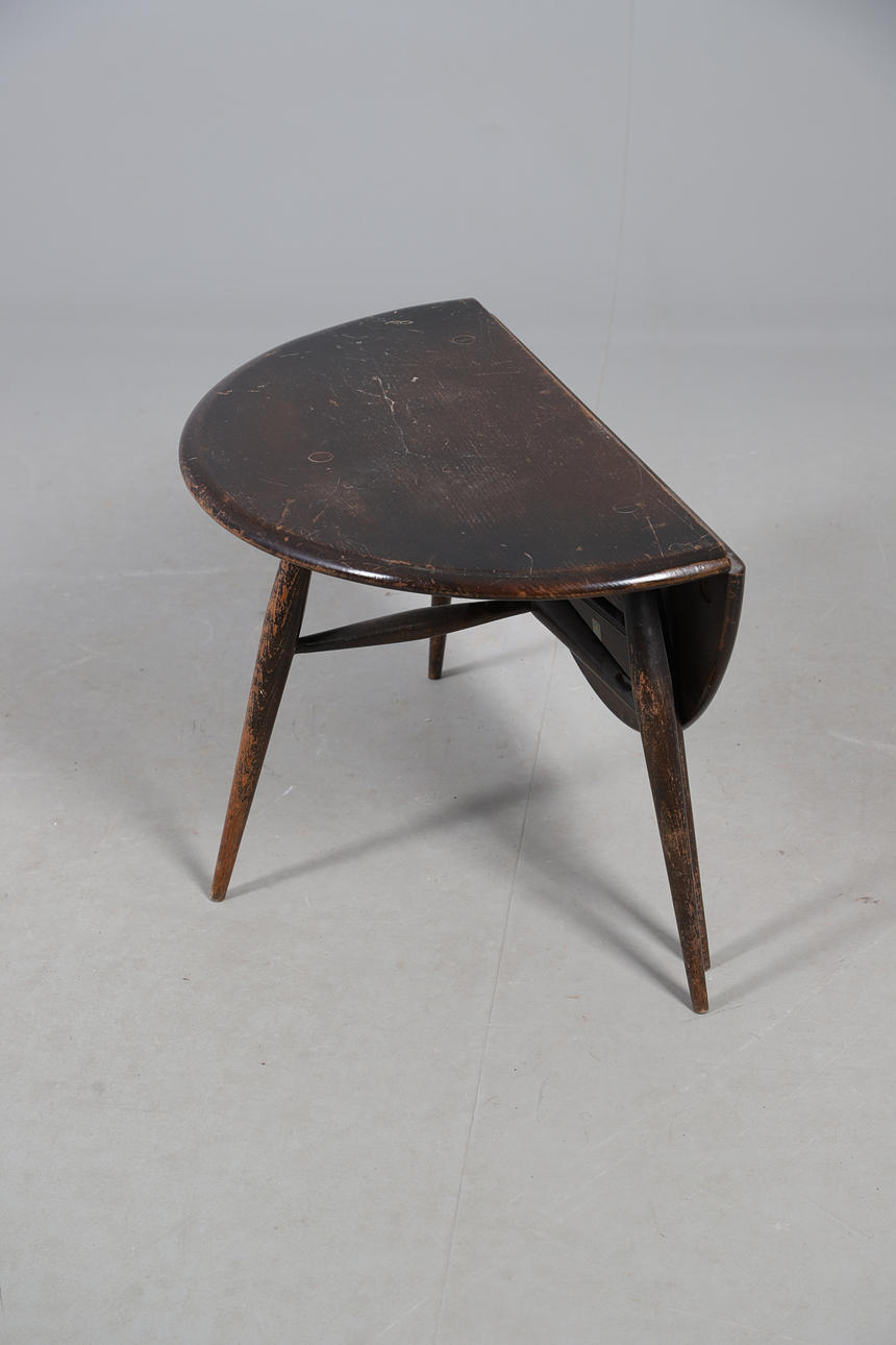 with folding flap to a gateleg action, Ercol label to underside, 40cm high x 61cm diameter.